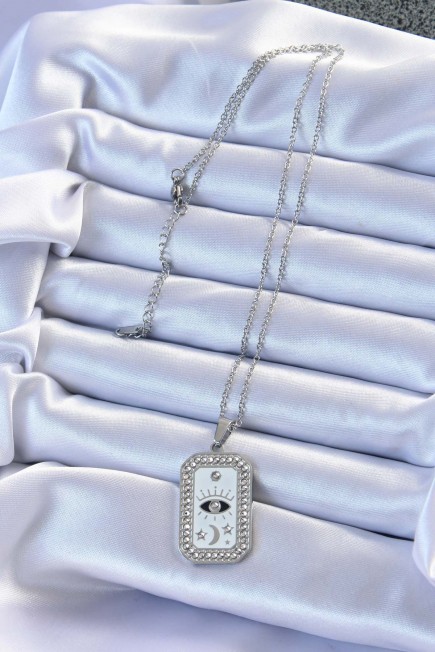 316L Çelik Zincir Gümüş Renk Mineli Zirkon Taşlı Göz Figür Tarot Kolye - 257350