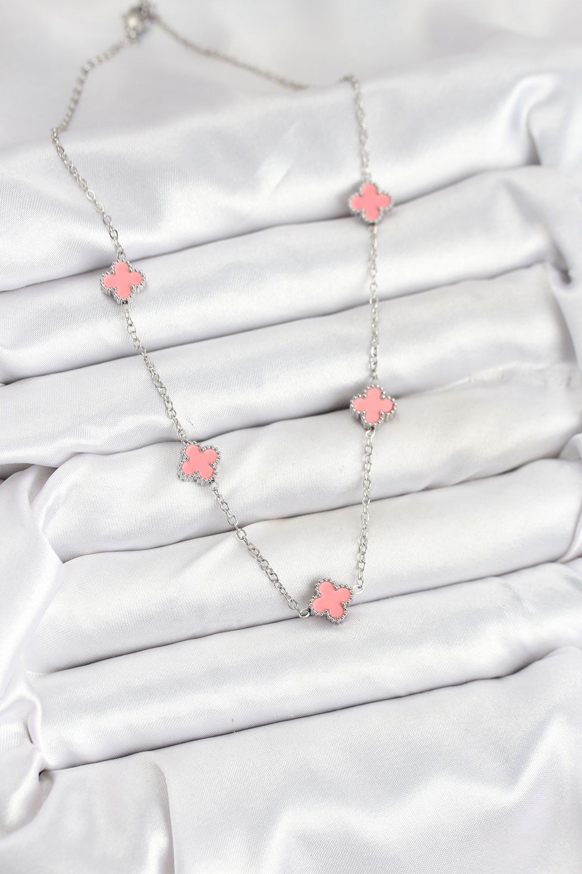 316L Çelik Zincir Gümüş Renk Pembe Baby Boy Yonca Kadın Kolye - 265686