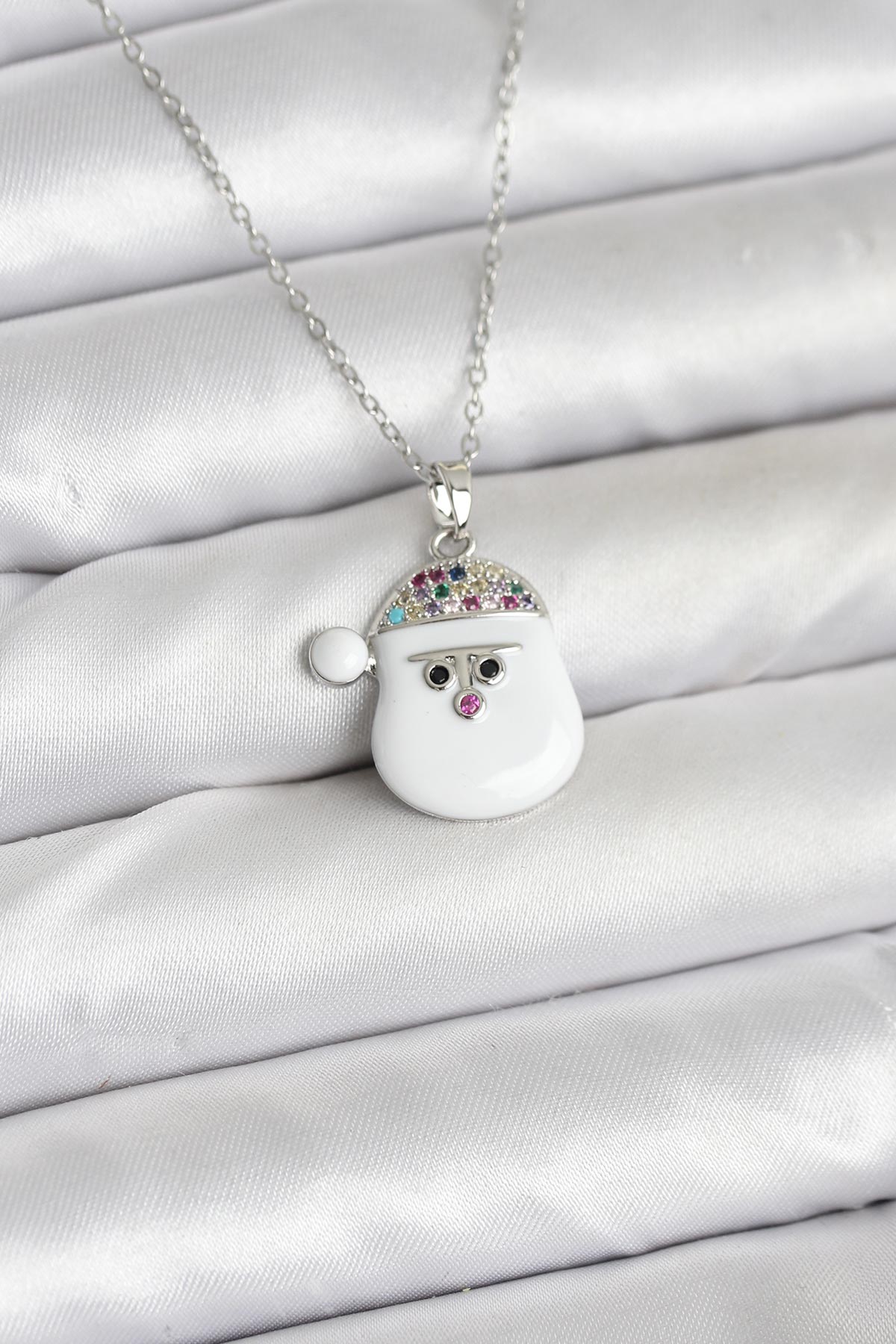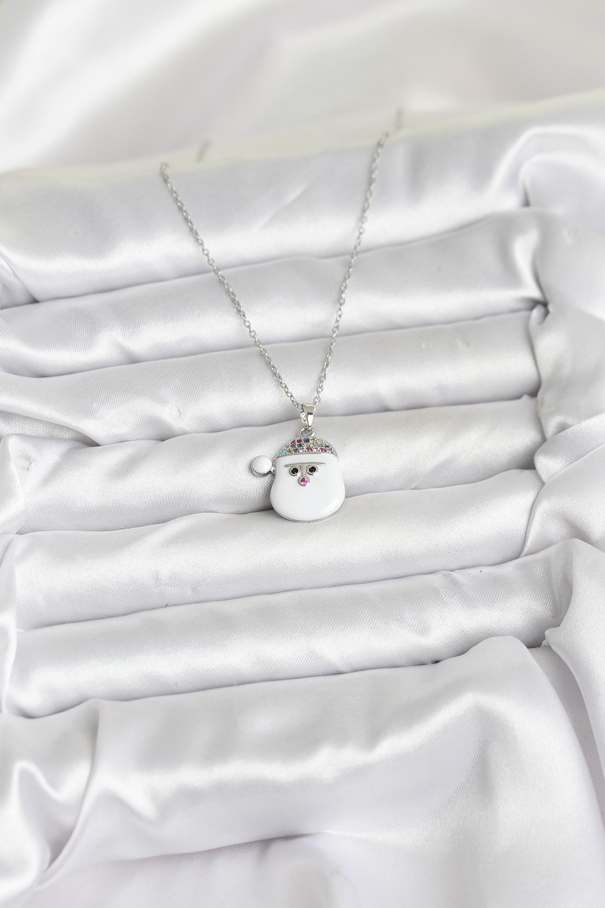 316L Çelik Zincir Gümüş Renk Şapkalı Kardan Adam Kafası Model Yılbaşı Temalı Kadın Kolye - 266351