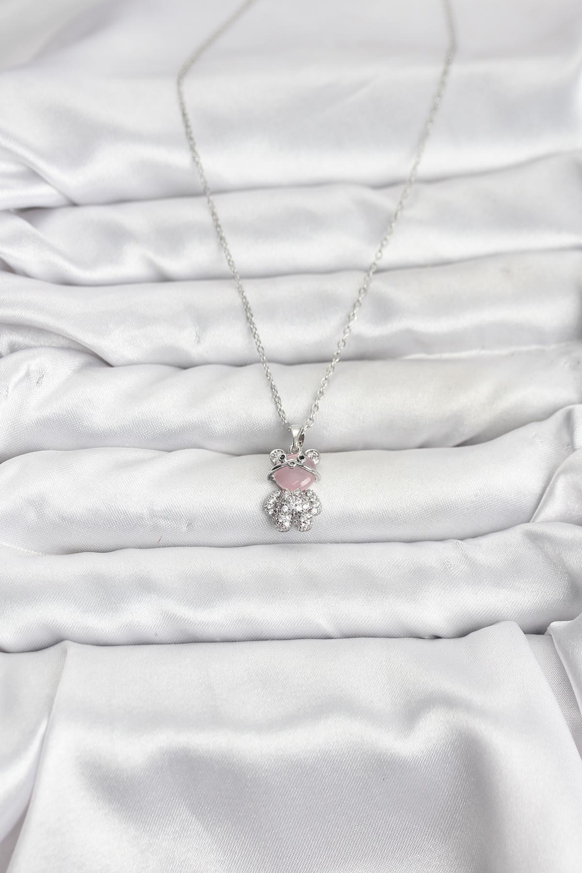316L Çelik Zincir Gümüş Renk Teddy Bear Model Zirkon Taşlı Kadın Kolye - 267116