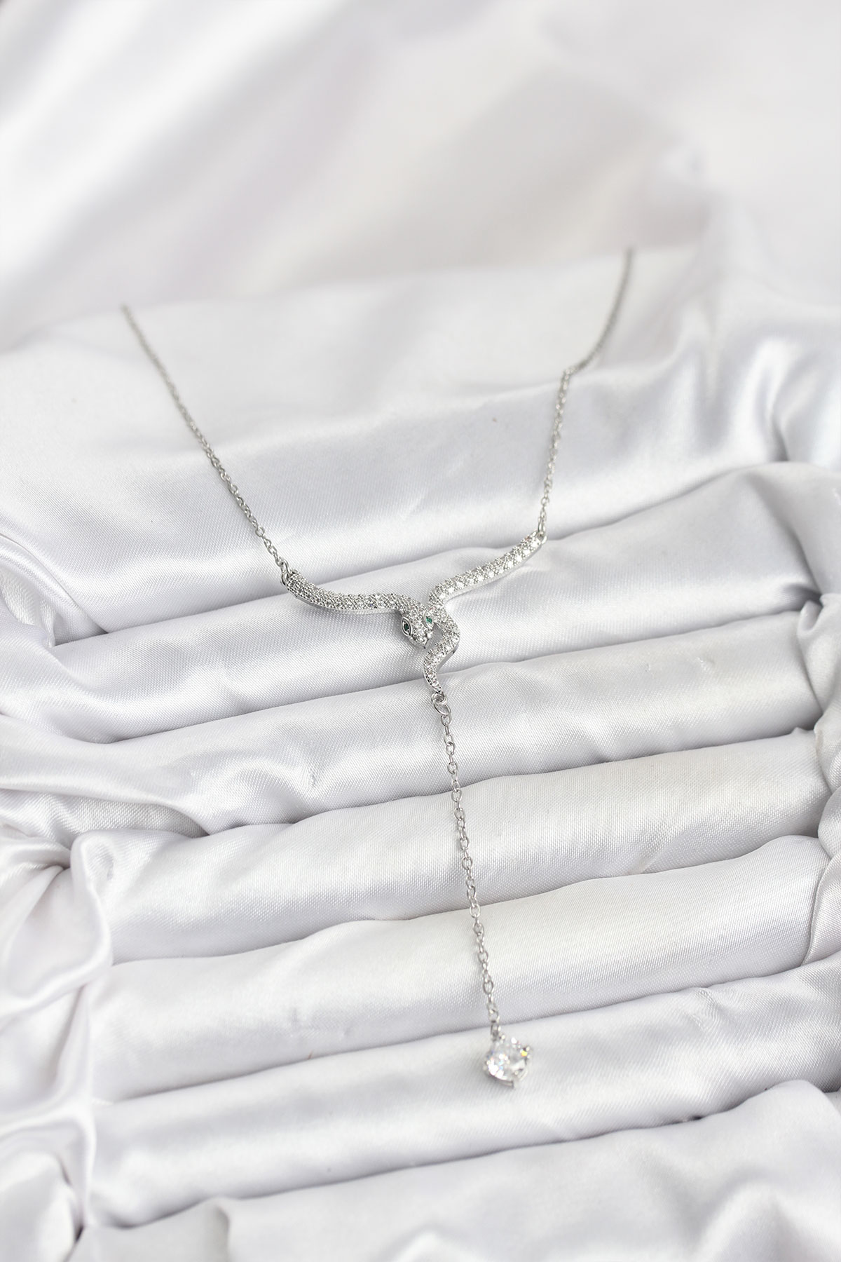 316L Çelik Zincir Gümüş Renk Yılan Model Y Kolye - 266289