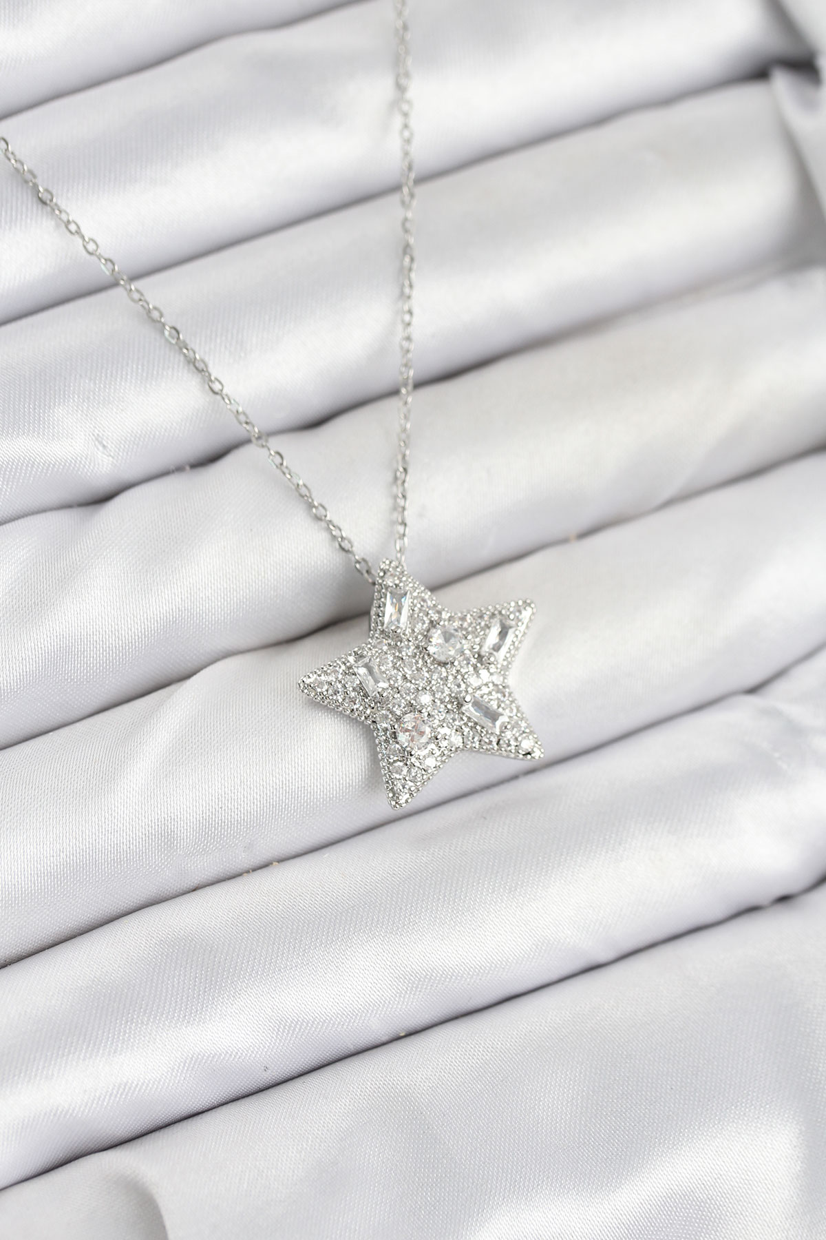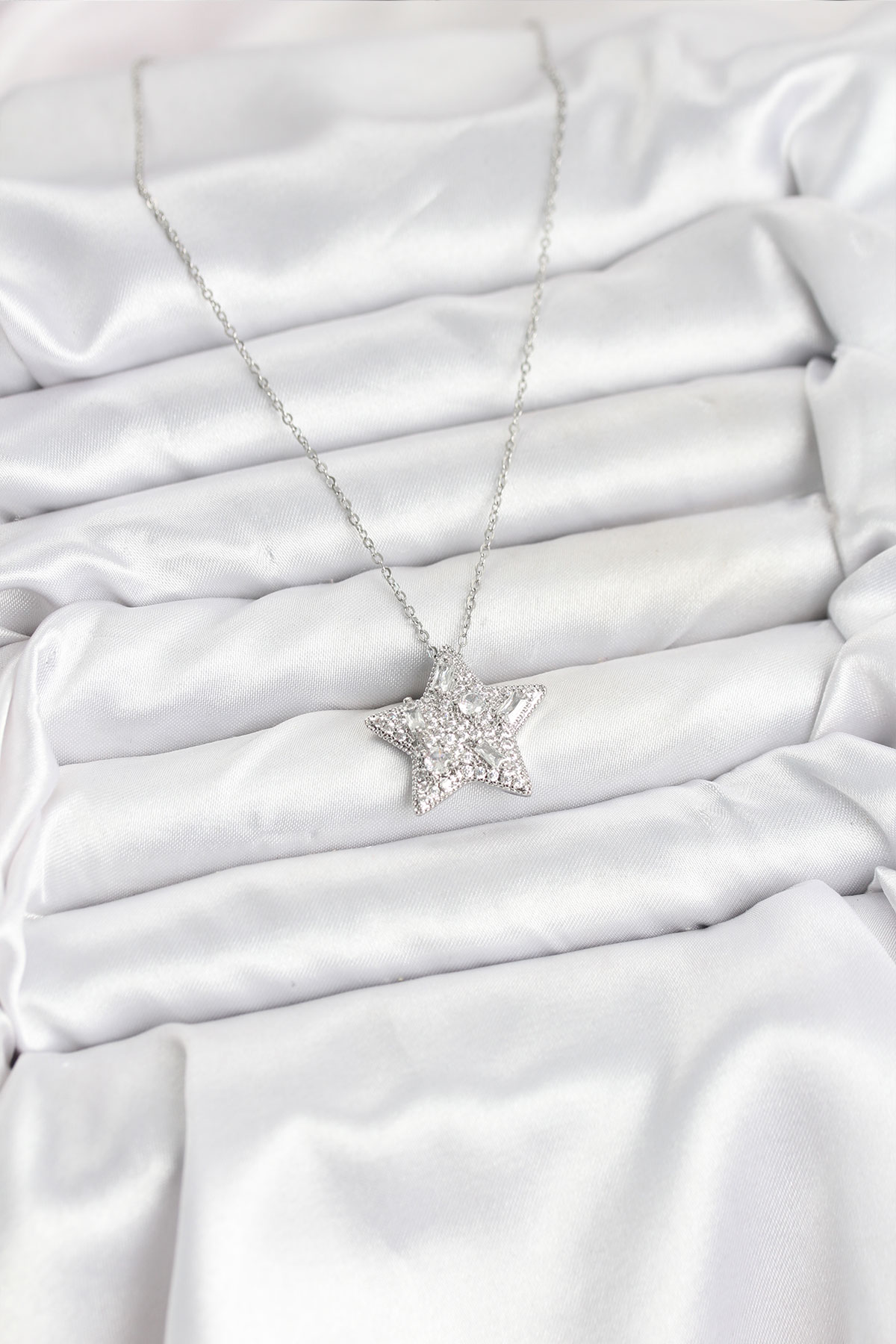 316L Çelik Zincir Gümüş Renk Yıldız Model Kadın Kolye - 266200