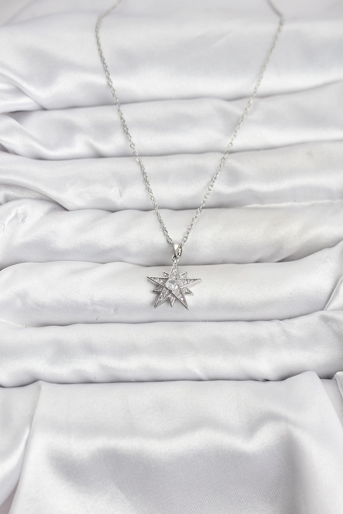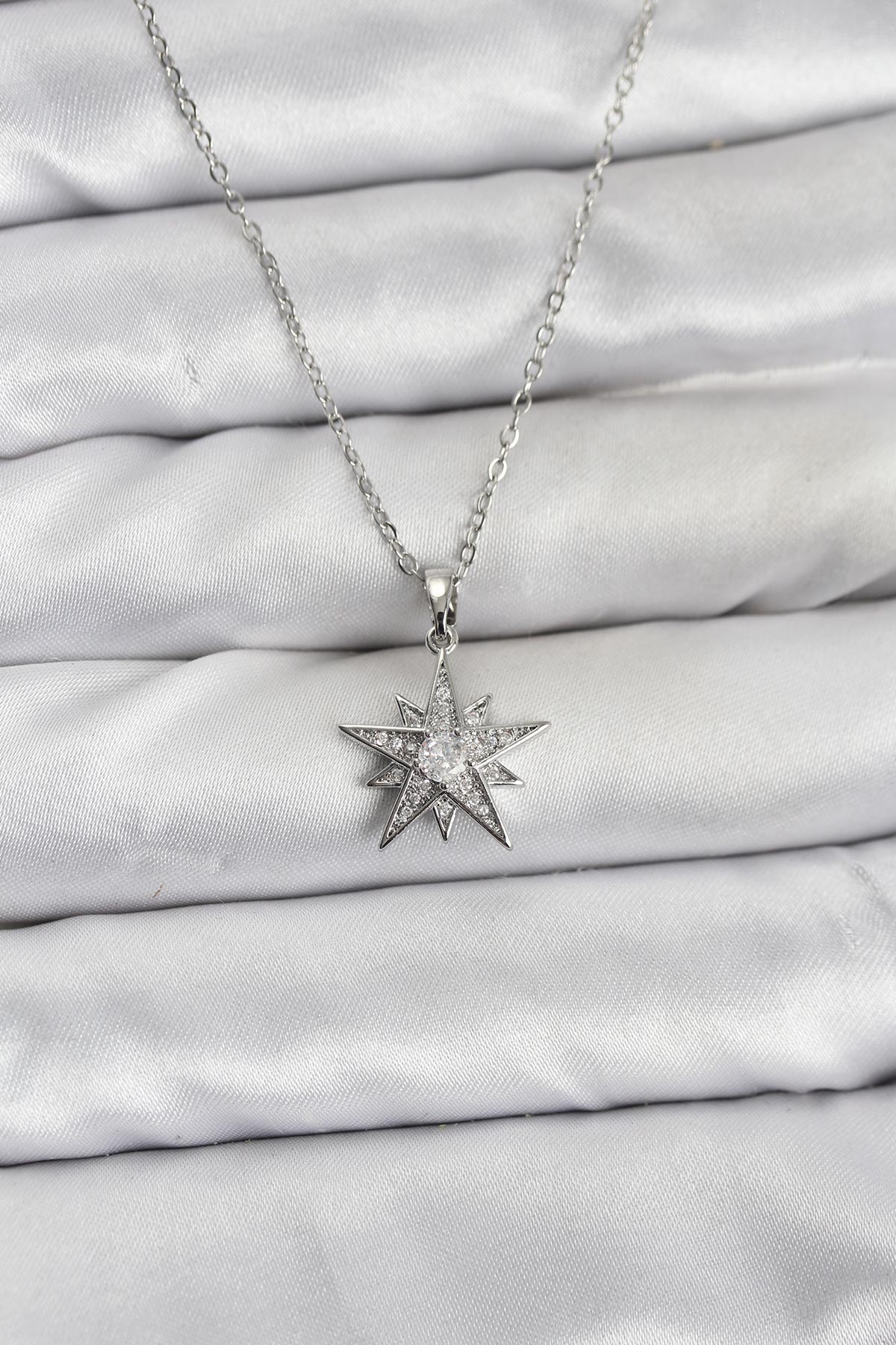 316L Çelik Zincir Gümüş Renk Yıldız Model Zirkon Taşlı Kadın Kolye - 267108