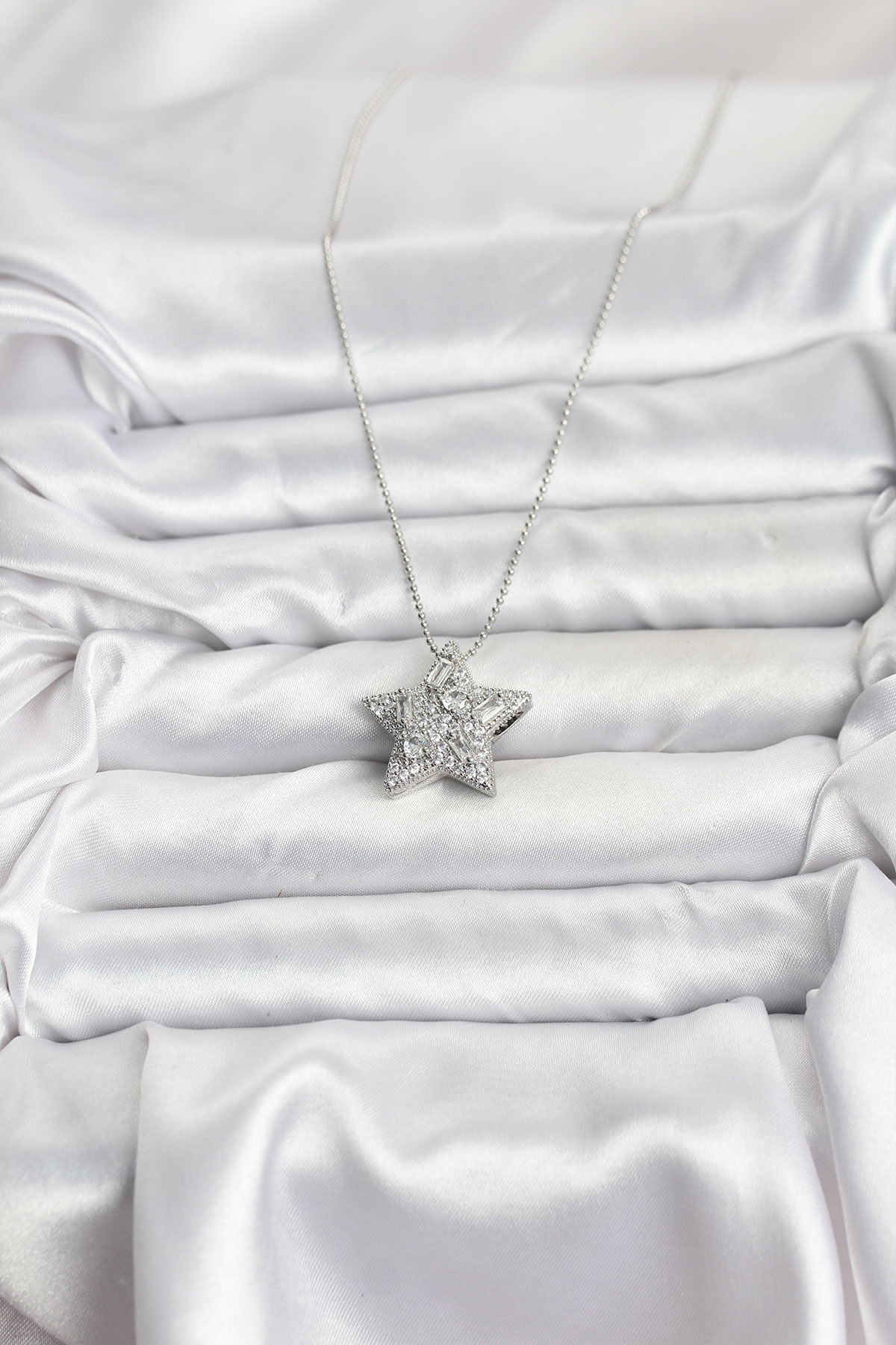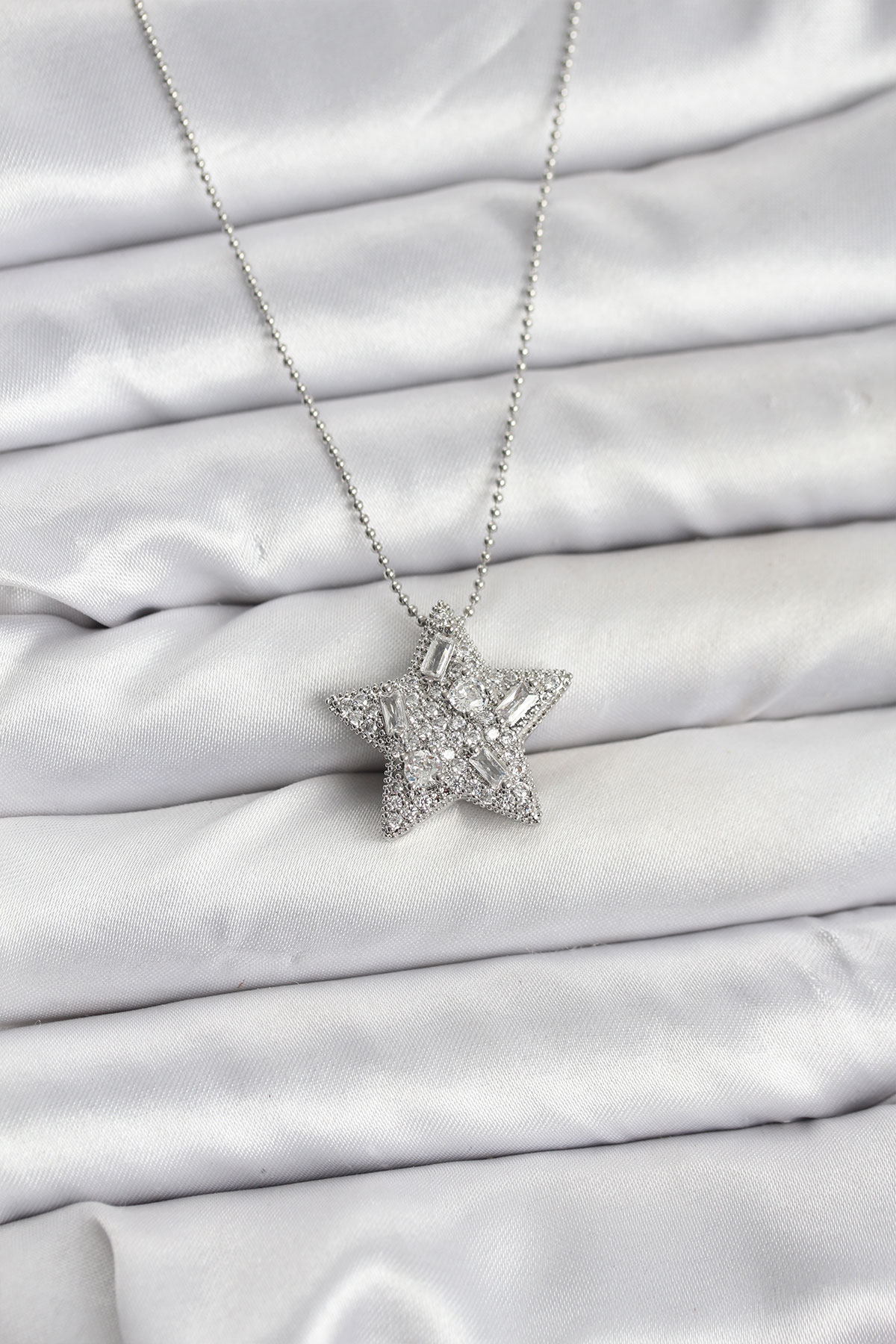 316L Çelik Zincir Gümüş Renk Zincirli Gümüş Yıldız Model Kadın Kolye - 266303