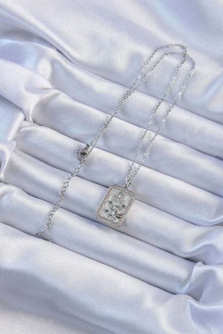 316L Çelik Zincir Gümüş Renk Zirkon Taşlı Aslan Figürlü Tarot Kolye - 257408