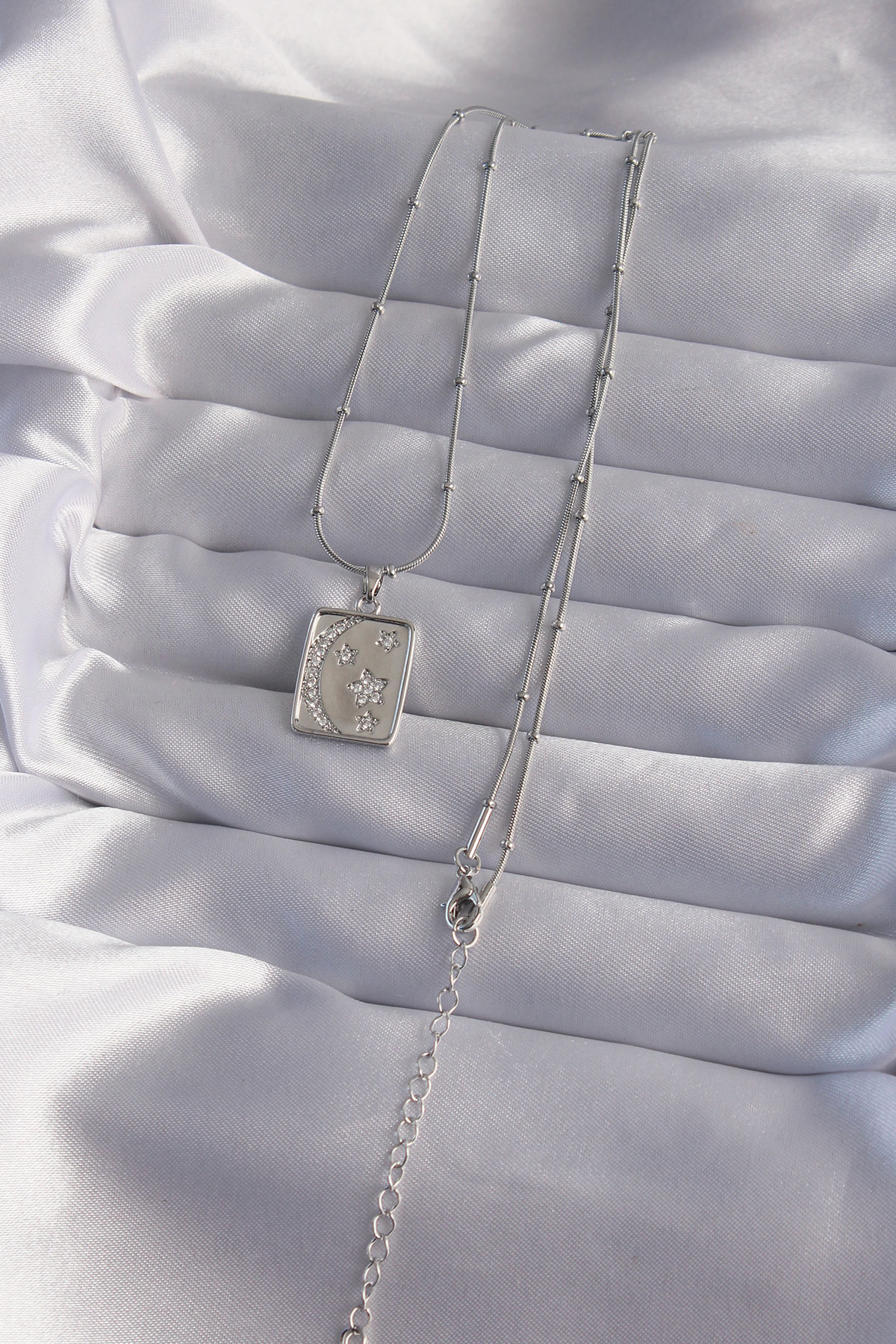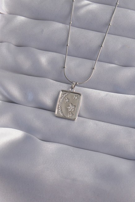 316L Çelik Zincir Gümüş Renk Zirkon Taşlı Ay Yıldız Figürlü Tarot Kolye - 256760