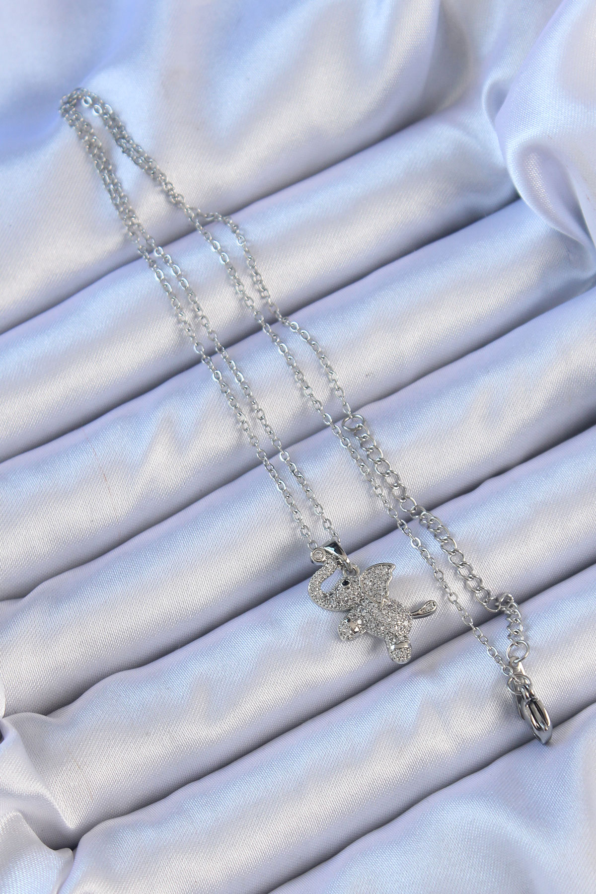 316L Çelik Zincir Gümüş Renk Zirkon Taşlı Fil Kolye - 256878