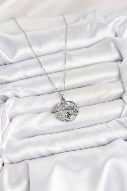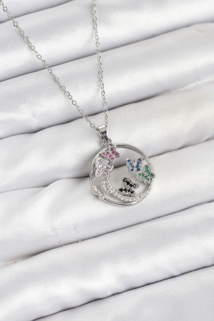 316L Çelik Zincir Gümüş Renk Zirkon Taşlı Kelebekli Kadın Kolye - 266184