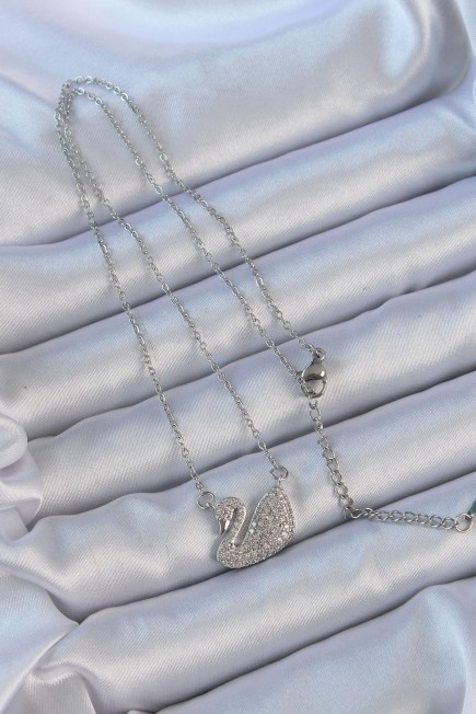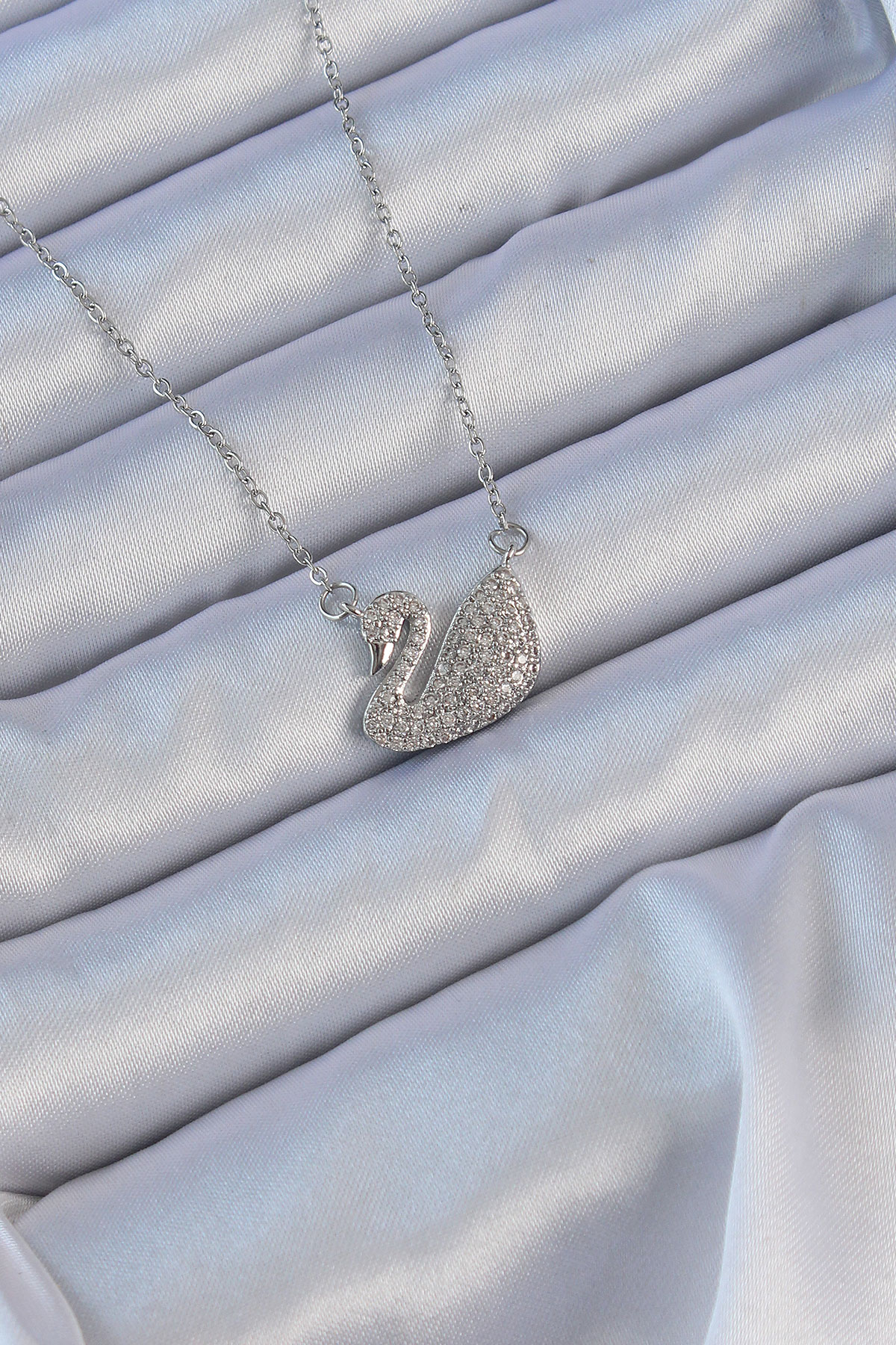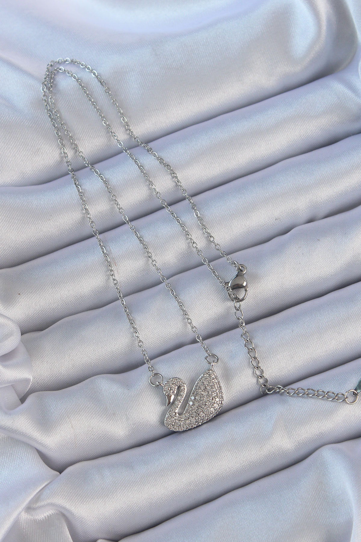 316L Çelik Zincir Gümüş Renk Zirkon Taşlı Kuğu Kolye - 256936