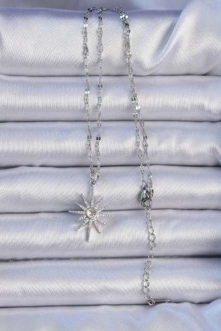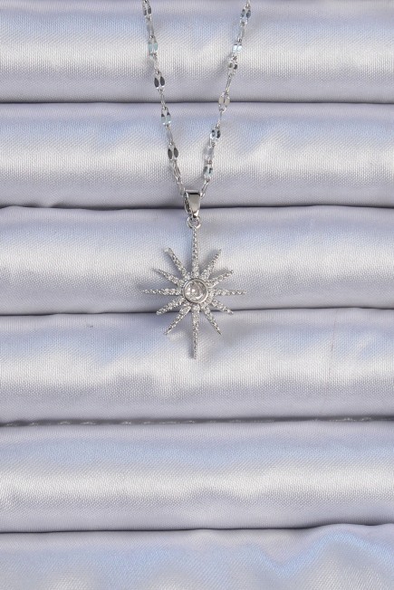 316L Çelik Zincir Gümüş Renk Zirkon Taşlı Kutup Yıldızı Kolye - 256850