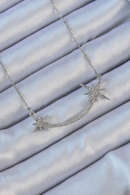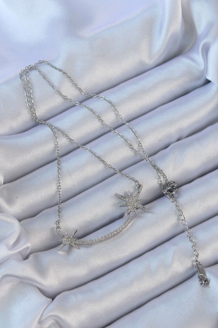 316L Çelik Zincir Gümüş Renk Zirkon Taşlı Kutup Yıldızı Kolye - 256926