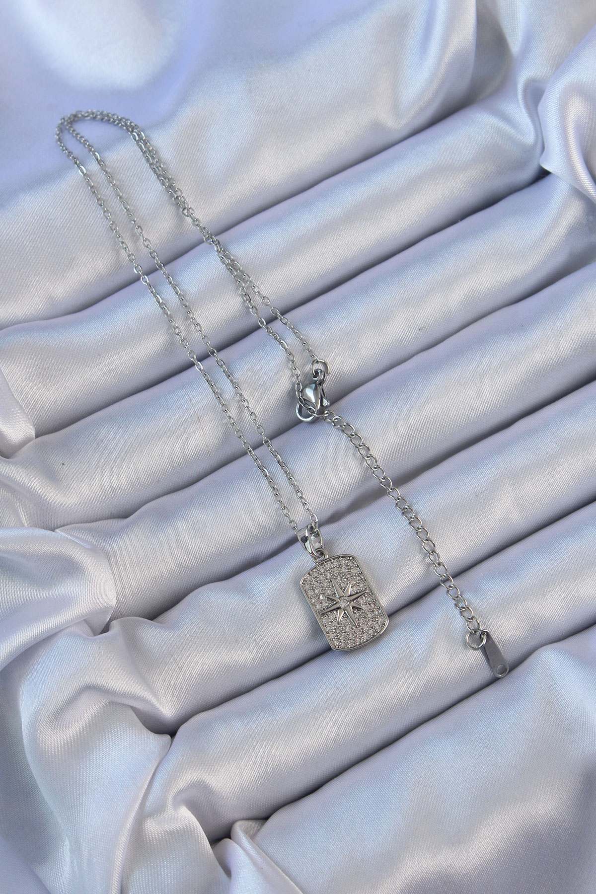 316L Çelik Zincir Gümüş Renk Zirkon Taşlı Kutup Yıldızlı Vintage Kolye - 256910