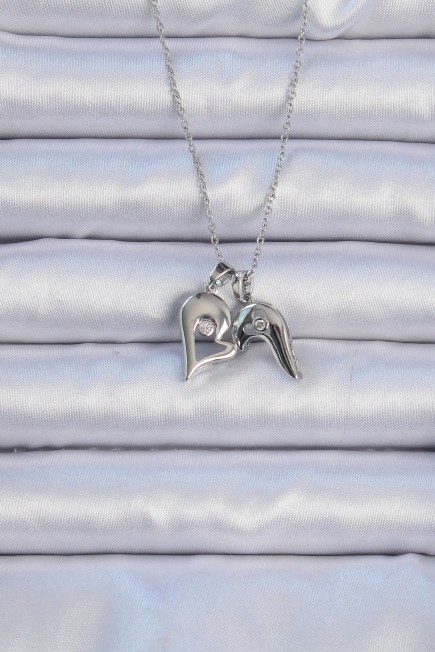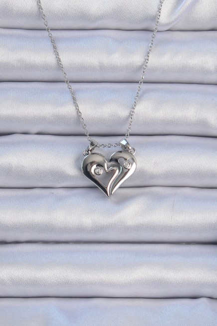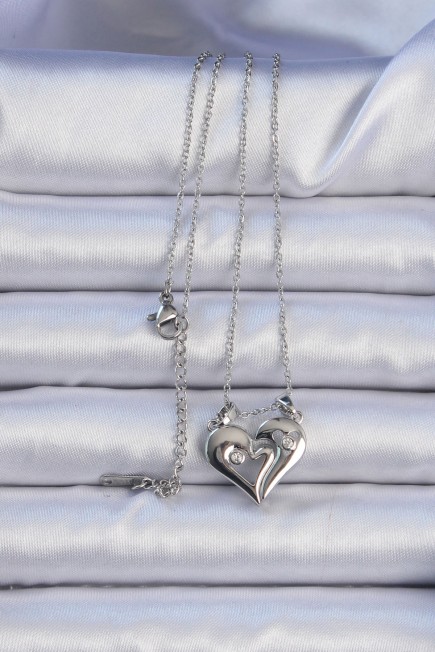 316L Çelik Zincir Gümüş Renk Zirkon Taşlı Mıknatıslı Kalp Kolye - 256868