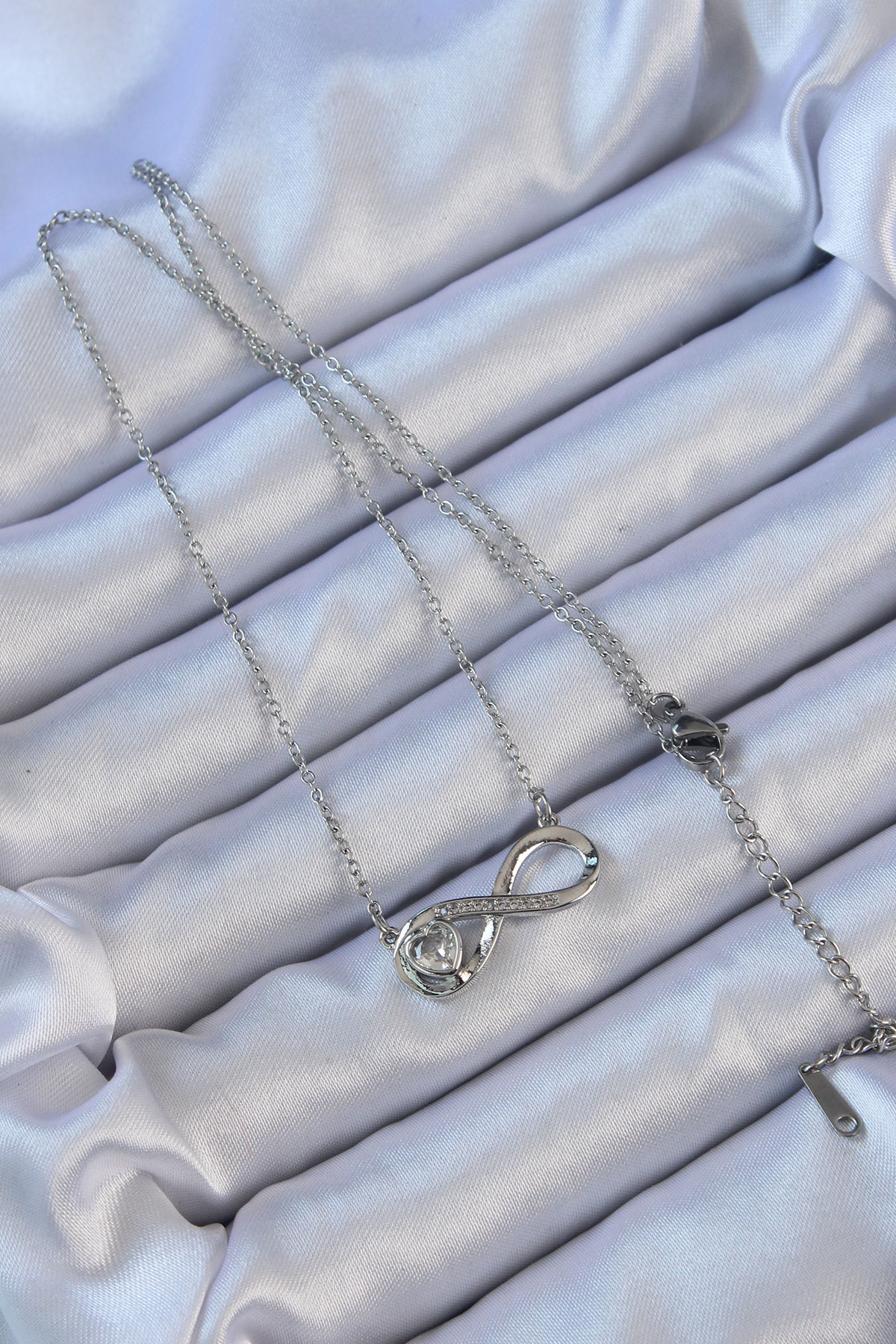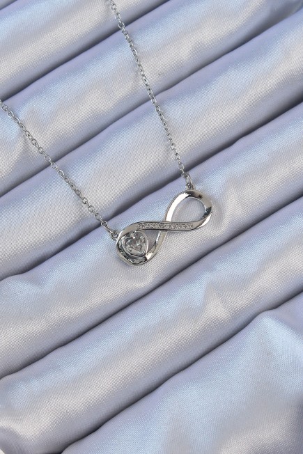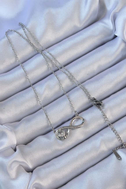 316L Çelik Zincir Gümüş Renk Zirkon Taşlı Minimal Kalp Figür Sonsuzluk Kolye - 256896