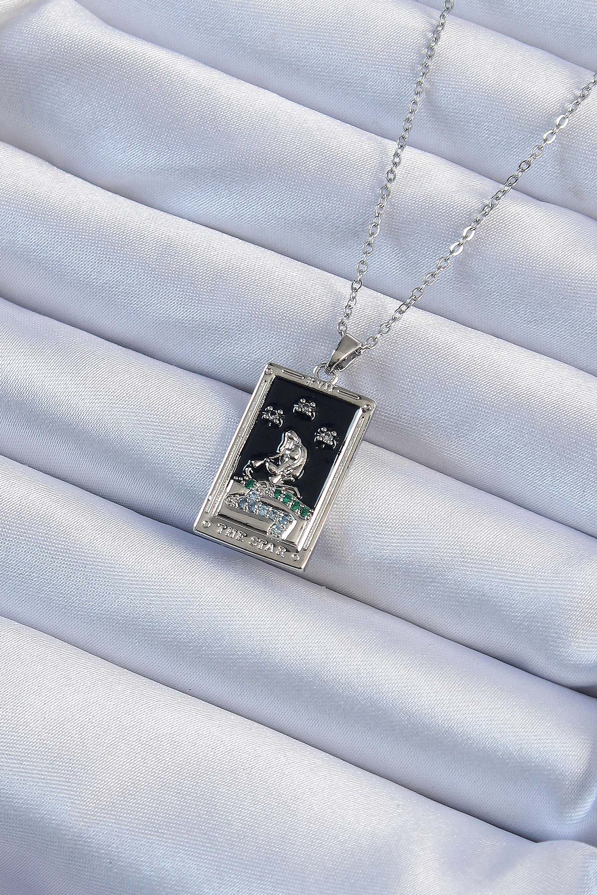 316L Çelik Zincir Gümüş Renk Zirkon Taşlı Siyah Mineli Kız Figürlü Tarot Kolye - 257410