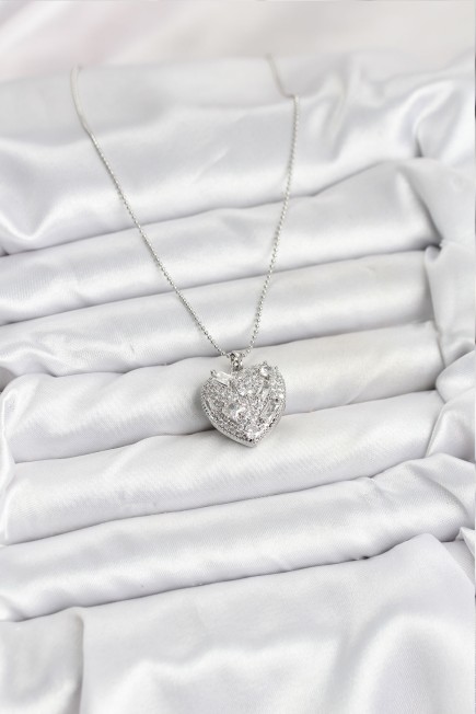 316L Çelik Zincir Gümüş Zirkon Taşlı Kalpli Kadın Kolye - 266201