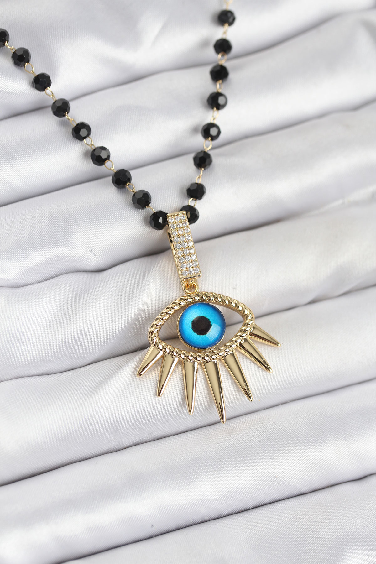 316L Çelik Zincir Kristal Boncuklu Göz Model Kadın Kolye - 265671