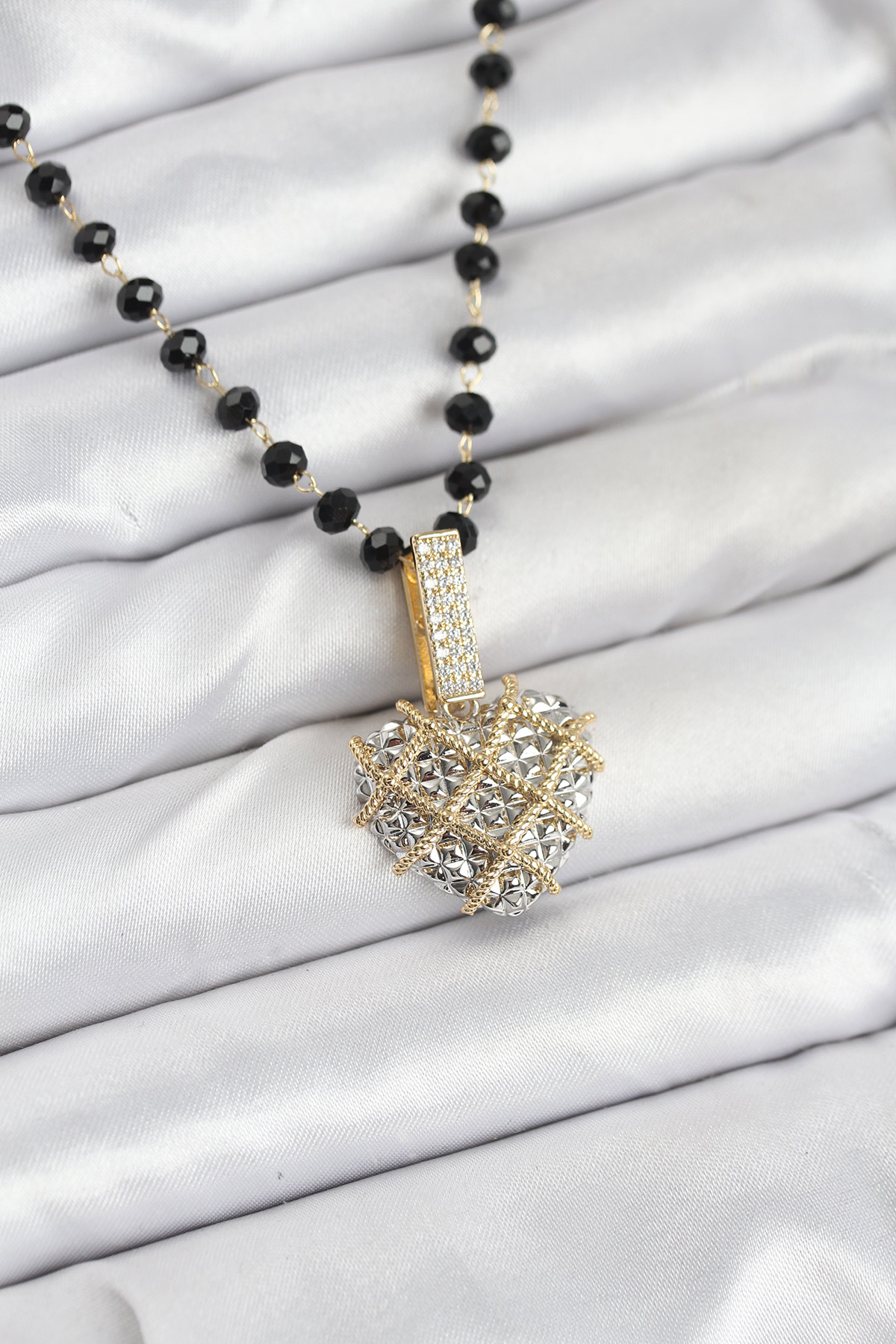 316L Çelik Zincir Kristal Boncuklu Kalpli Kadın Kolye - 265669