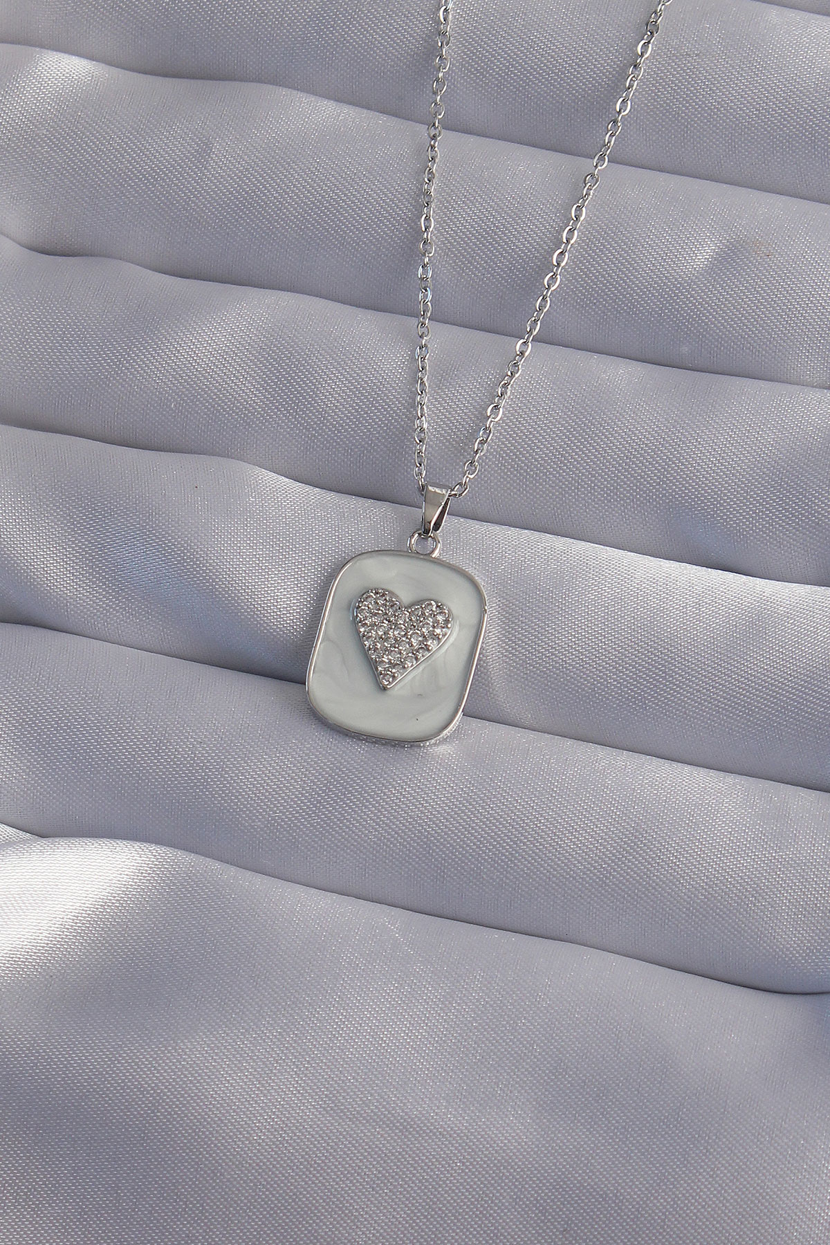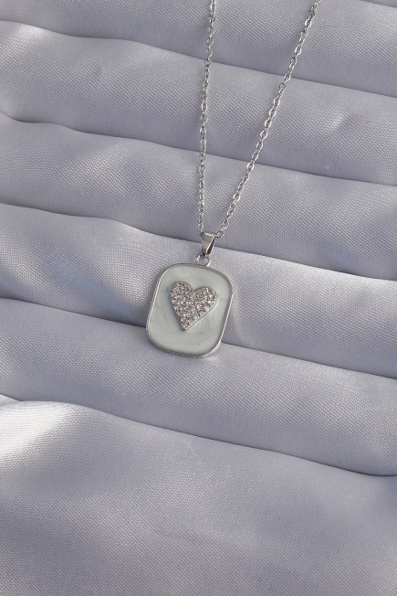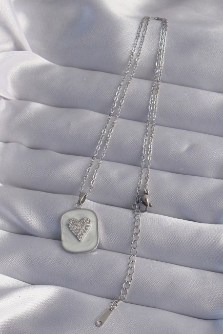 316L Çelik Zincir Mermer Desenli Gümüş Renk Zirkon Taşlı Kalp Model Kolye - 256752
