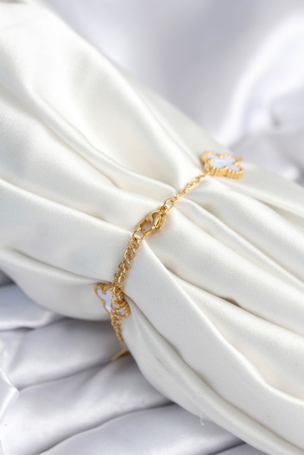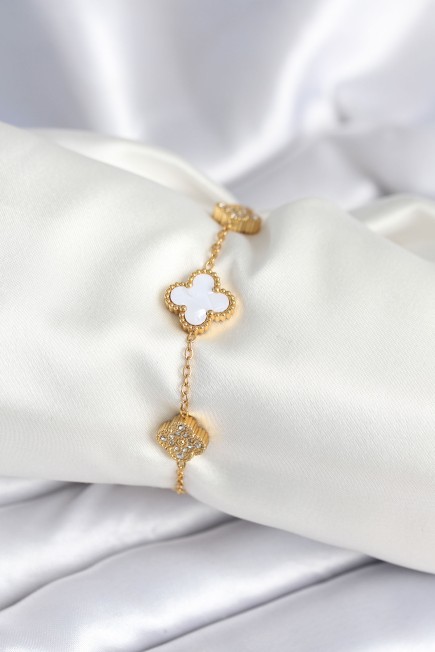 316L Çelik Zincir Zirkon Taşlı Yonca Beyaz Kadın Bileklik - 265880