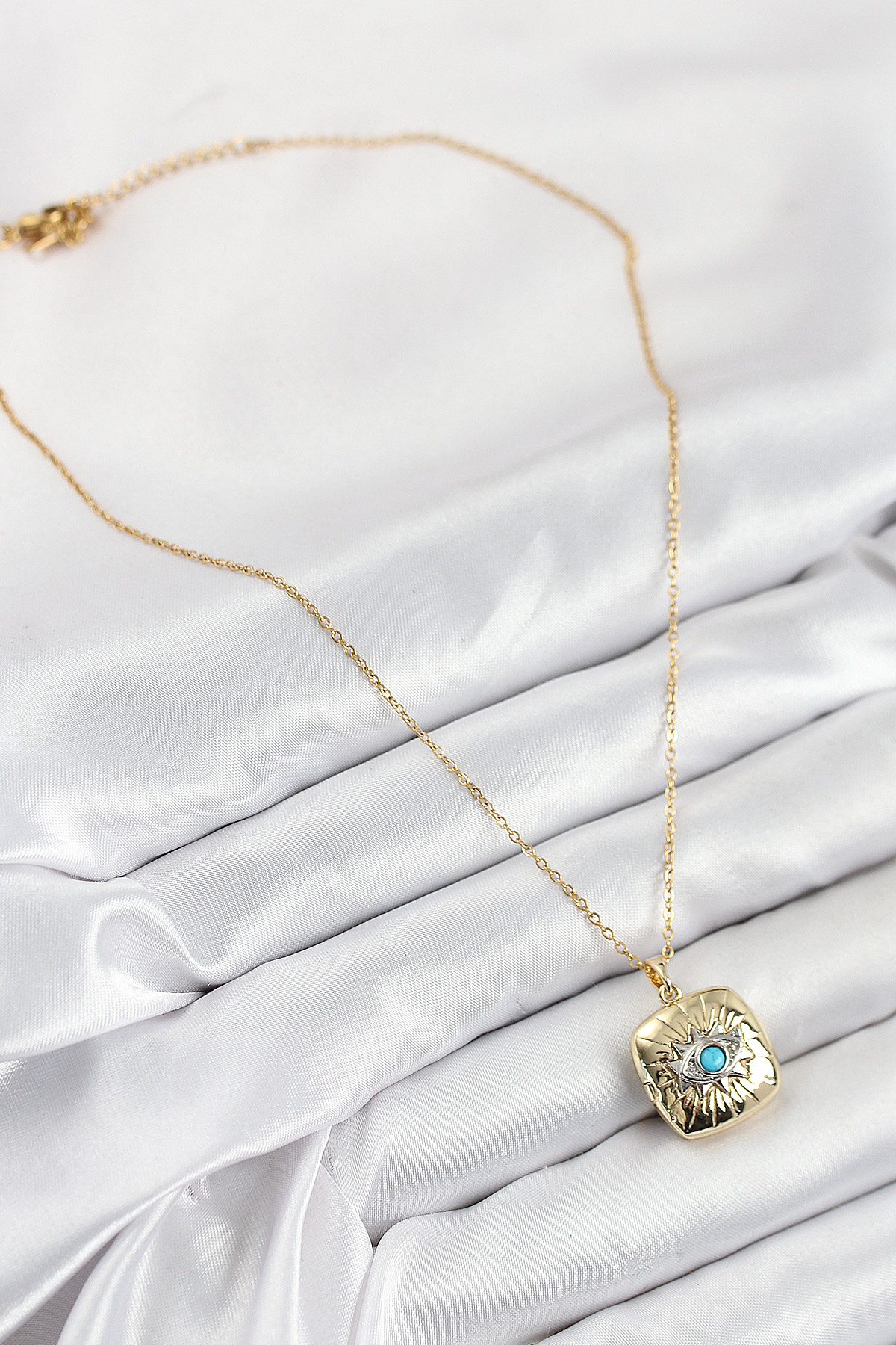 316L Çelik Zirkon Taşlı Açılabilr Kapaklı Göz Model Gold Renk Kadın Kolye - 265444