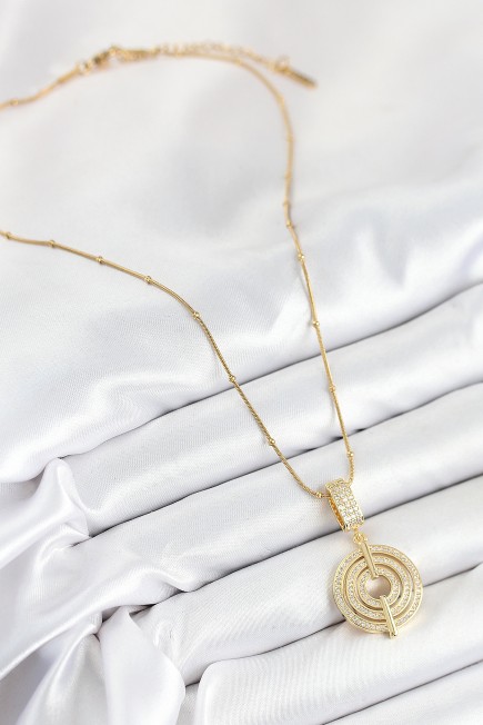 316L Çelik Zirkon Taşlı Çember Model Gold Renk Kadın Kolye - 265494