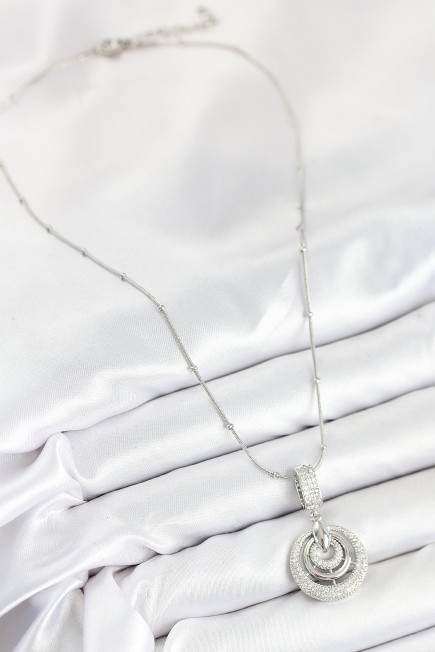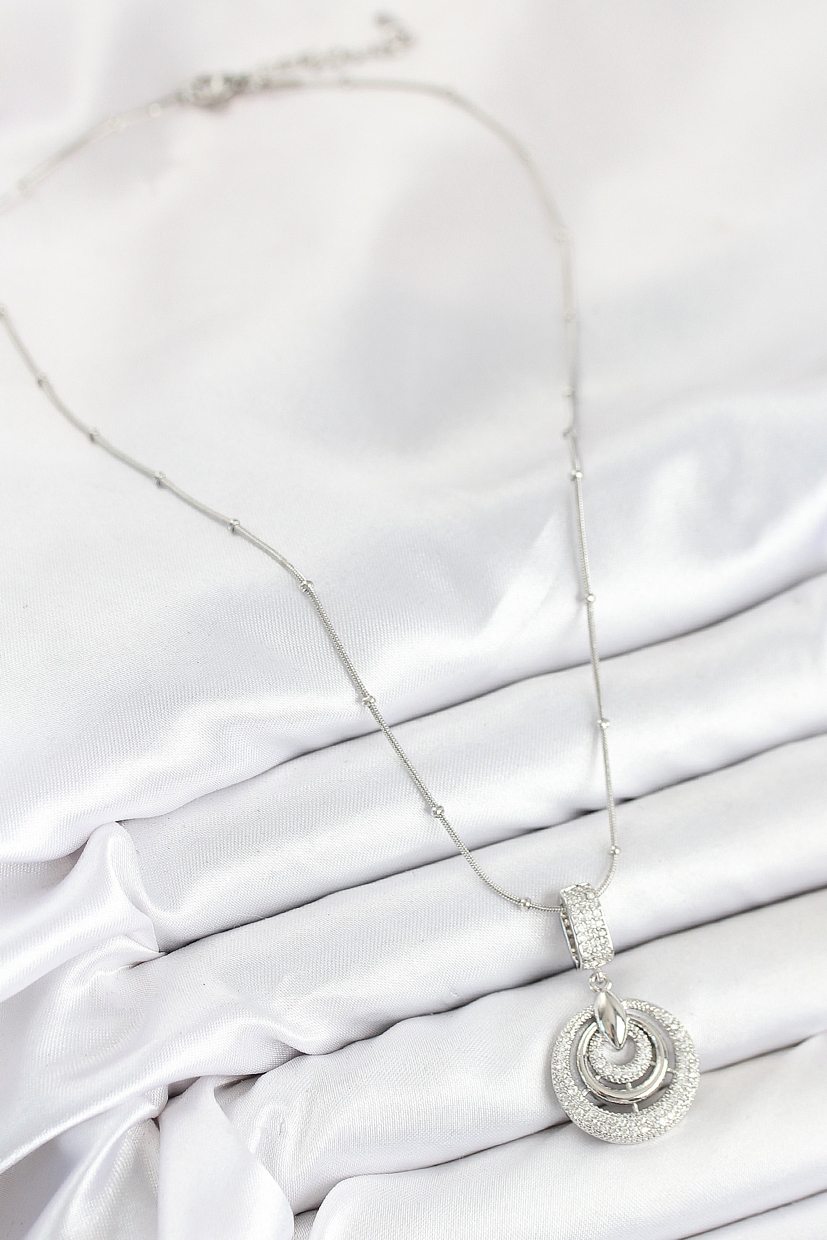 316L Çelik Zirkon Taşlı Çember Model Gümüş Renk Kadın Kolye - 265508