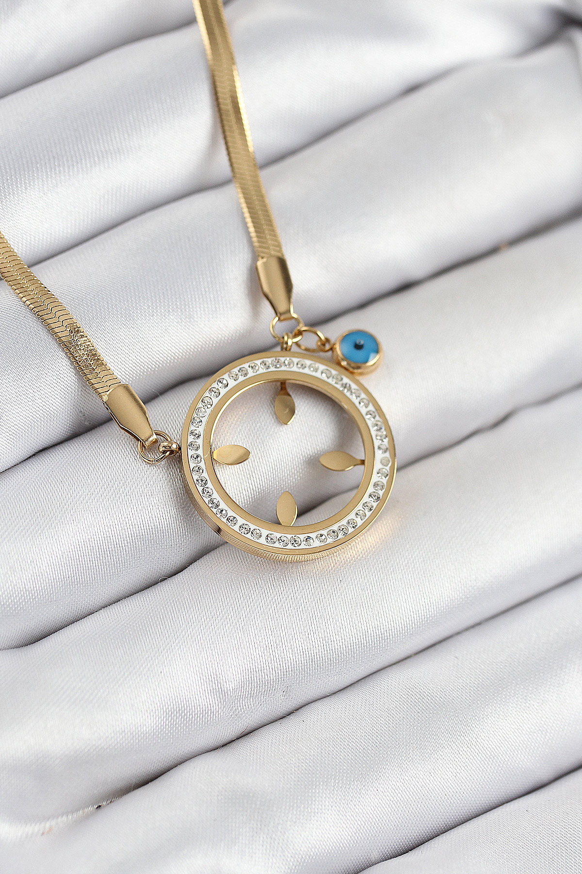 316L Çelik Zirkon Taşlı Çeyrek Takılabilir Gold Renk Kadın Kolye - 265432