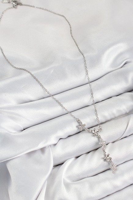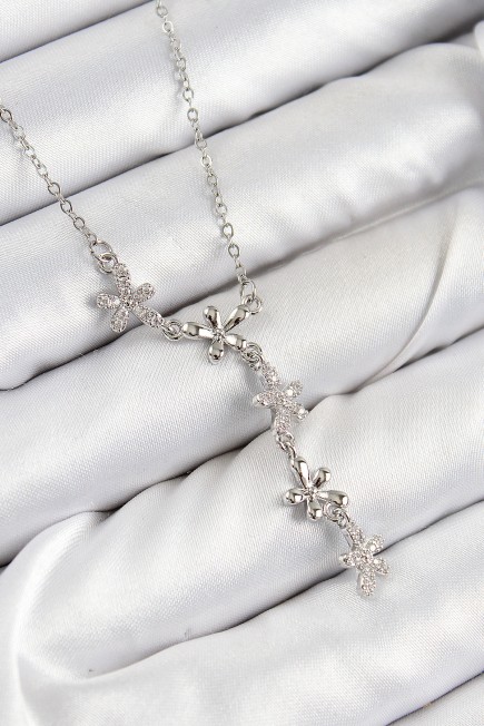 316L Çelik Zirkon Taşlı Çiçek Model Gümüş Renk Kadın Kolye - 264513