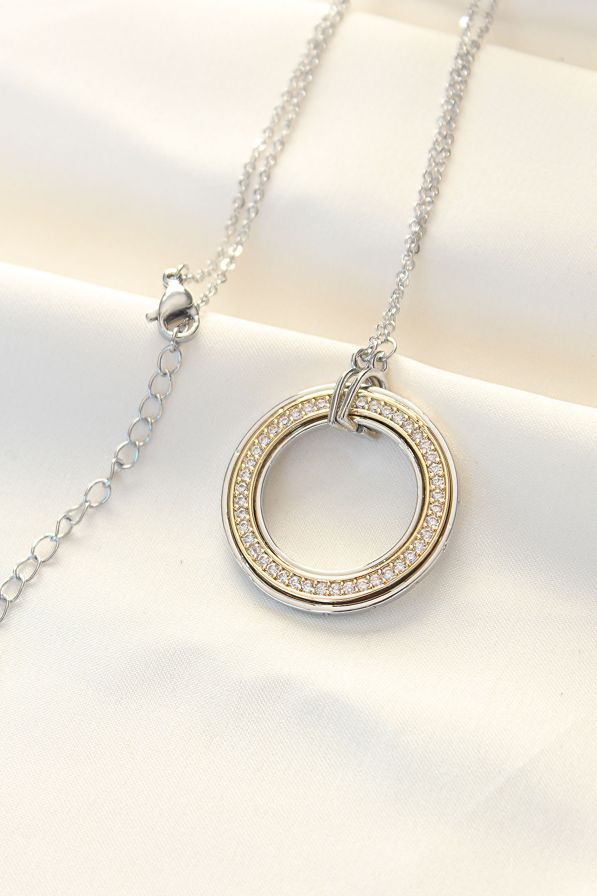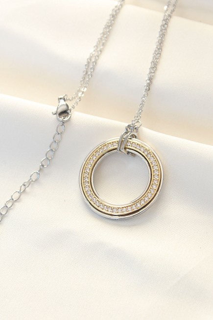 316L Çelik Zirkon Taşlı Çift Renkli Tifany Kolye - 254781