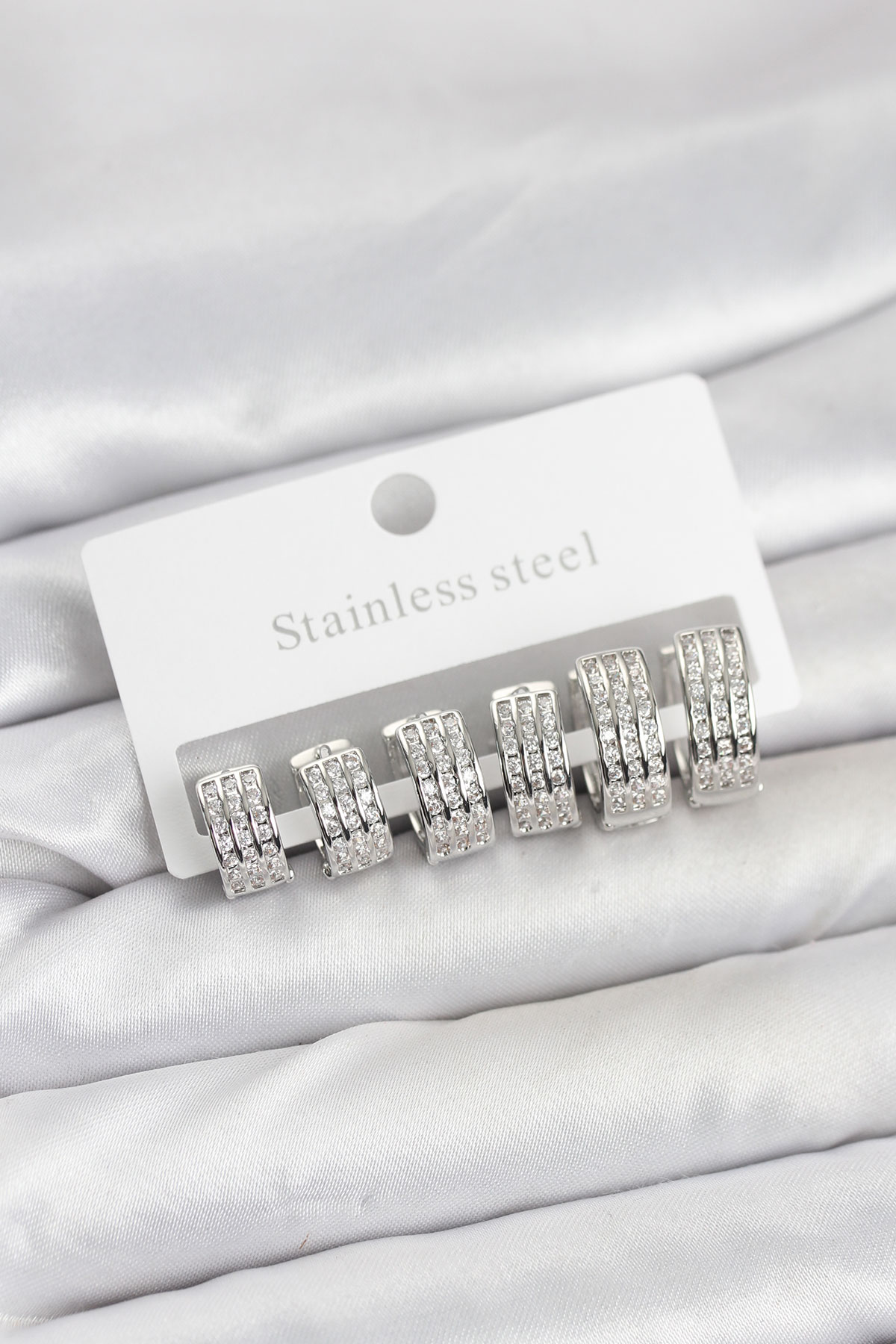 316L Çelik Zirkon Taşlı Gümüş Renk Halka Küpe Seti - 266795