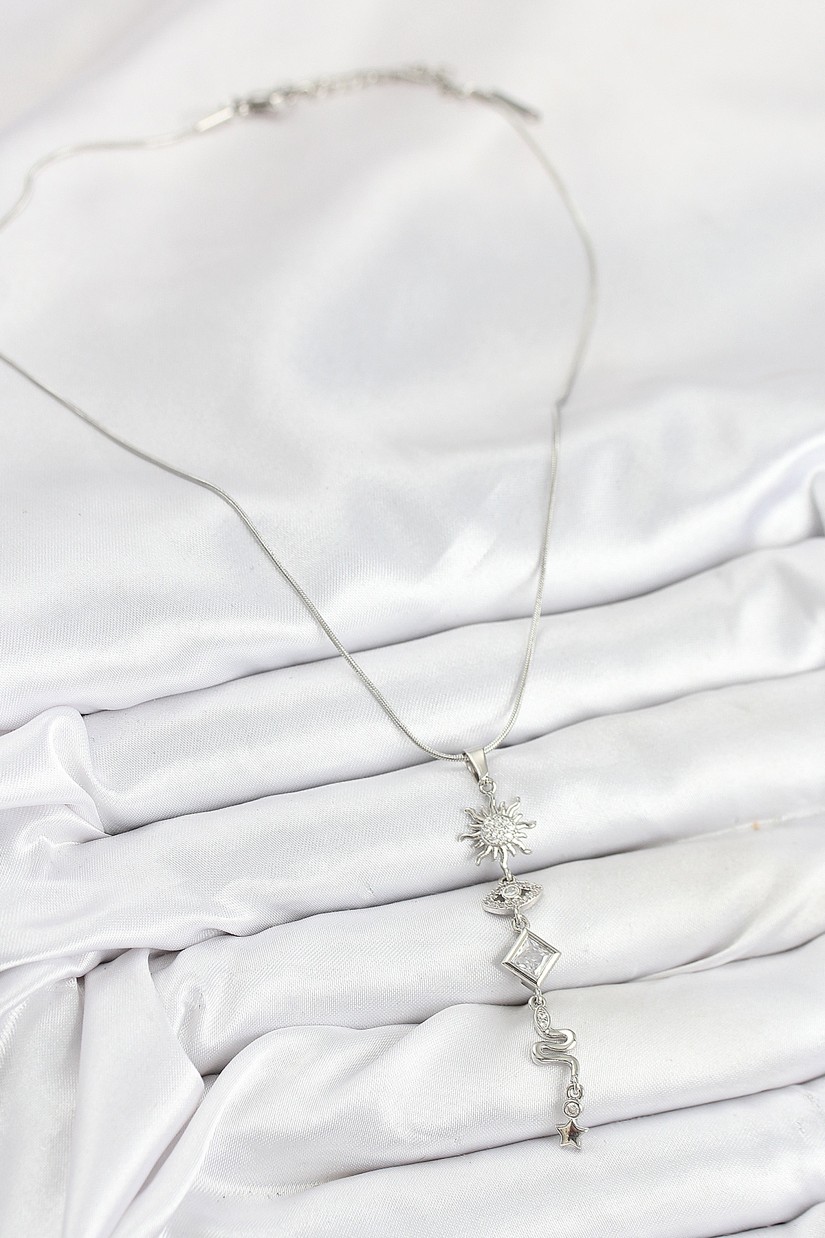 316L Çelik Zirkon Taşlı Güneş Ve Ay Enerji Model Gümüş Renk Kadın Kolye - 265574