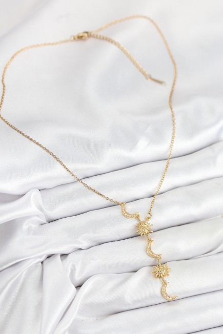 316L Çelik Zirkon Taşlı Güneş Ve Ay Model Gold Renk Kadın Kolye - 265571