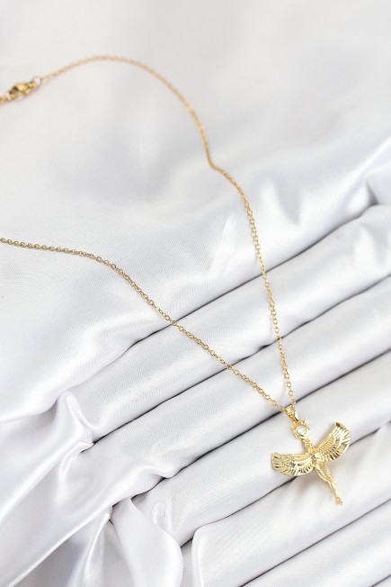 316L Çelik Zirkon Taşlı Melek Model Gold Renk Kadın Kolye - 265487
