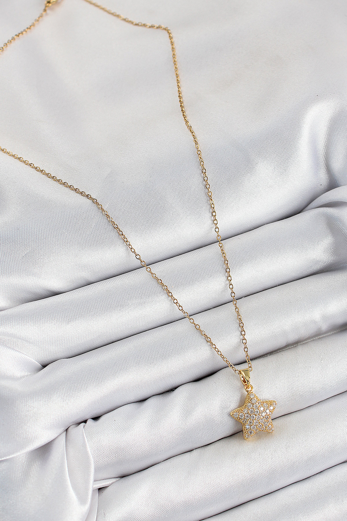 316L Çelik Zirkon Taşlı Yıldız Model Gold Renk Kadın Kolye - 264114