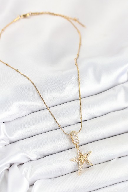 316L Çelik Zirkon Taşlı Yıldız Model Gold Renk Kadın Kolye - 265493