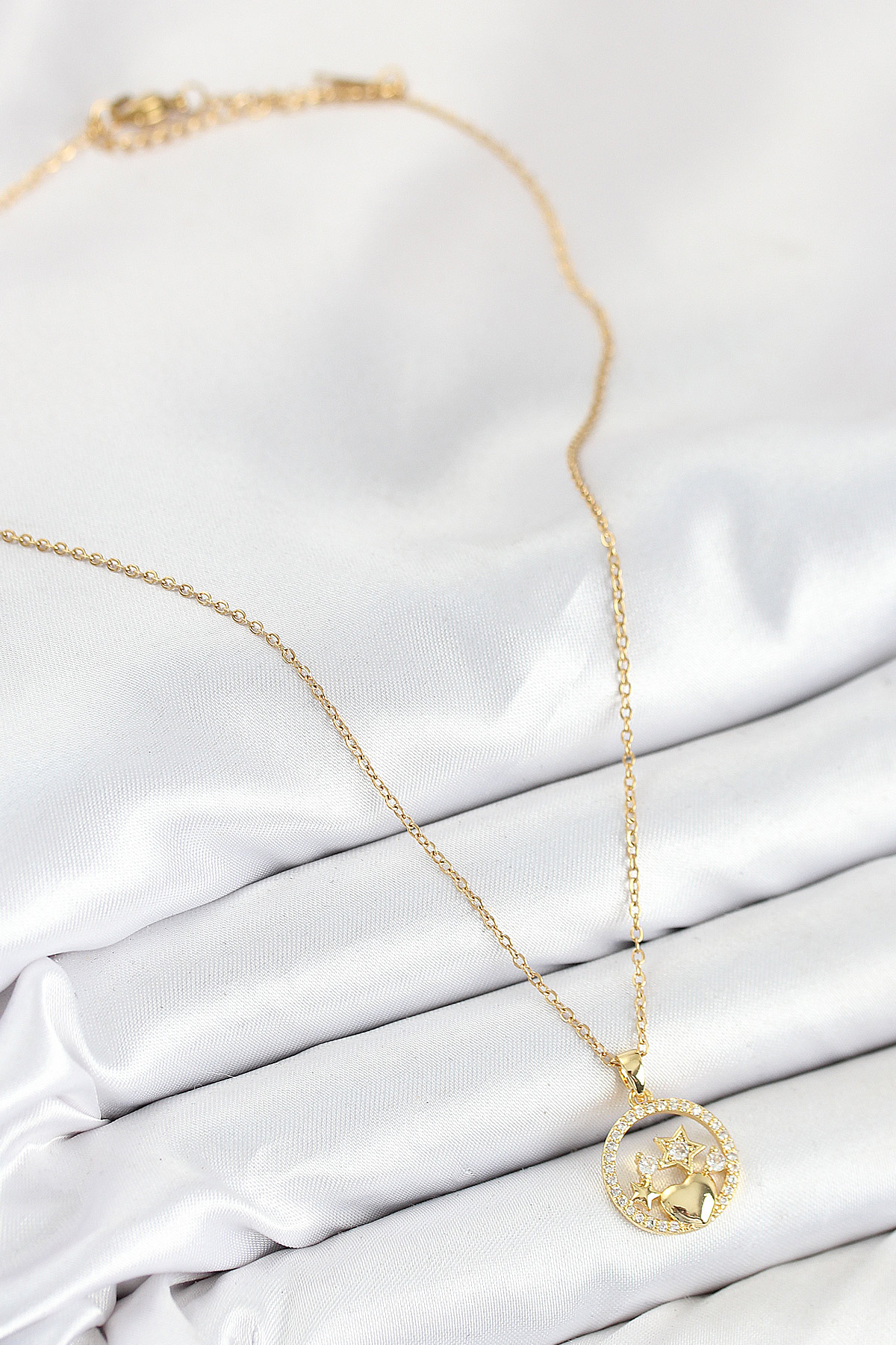 316L Çelik Zirkon Taşlı Yıldız Ve Kalp Model Gold Renk Kadın Kolye - 265489