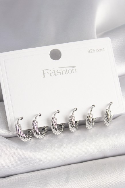 925 Ayar Gümüş Çivi Pirinç Gümüş Renk İşlemeli Halka Model Kadın Küpe Seti - 261544