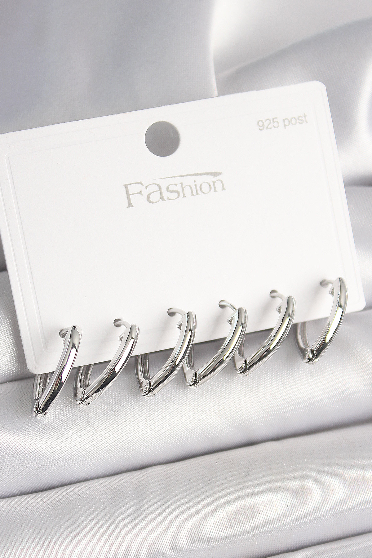 925 Ayar Gümüş Çivi Pirinç Gümüş Renk Üçgen Model Kadın Küpe Seti - 261548