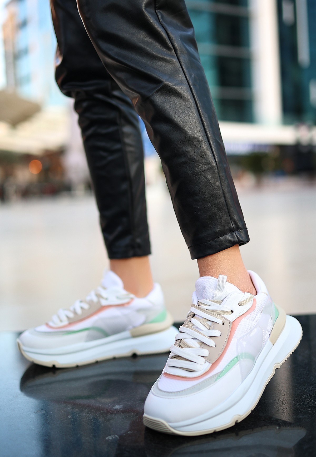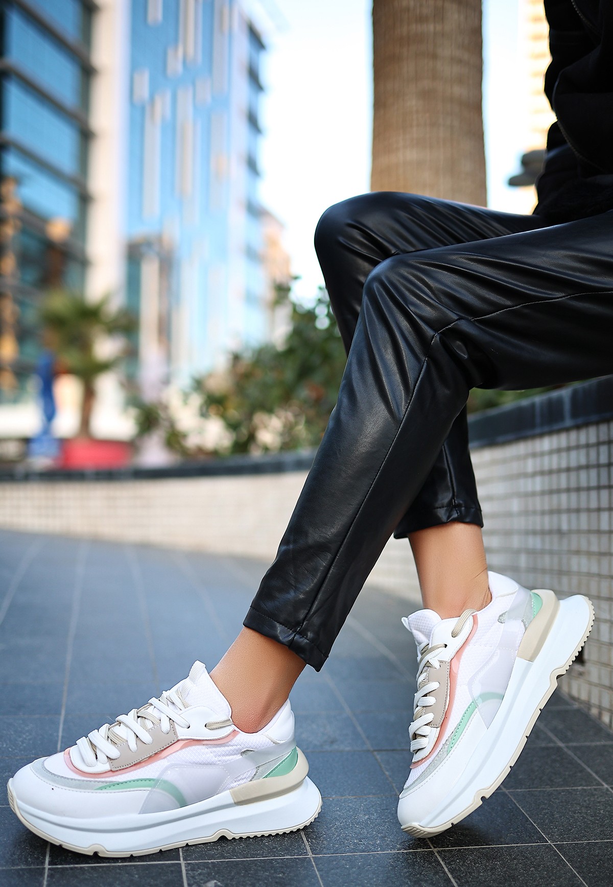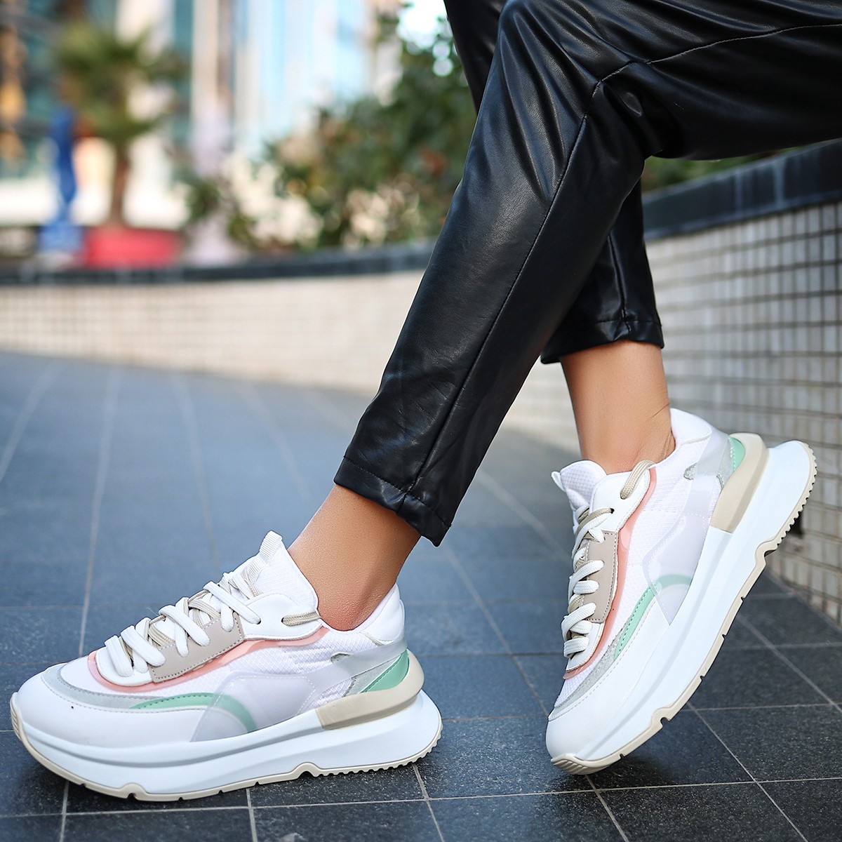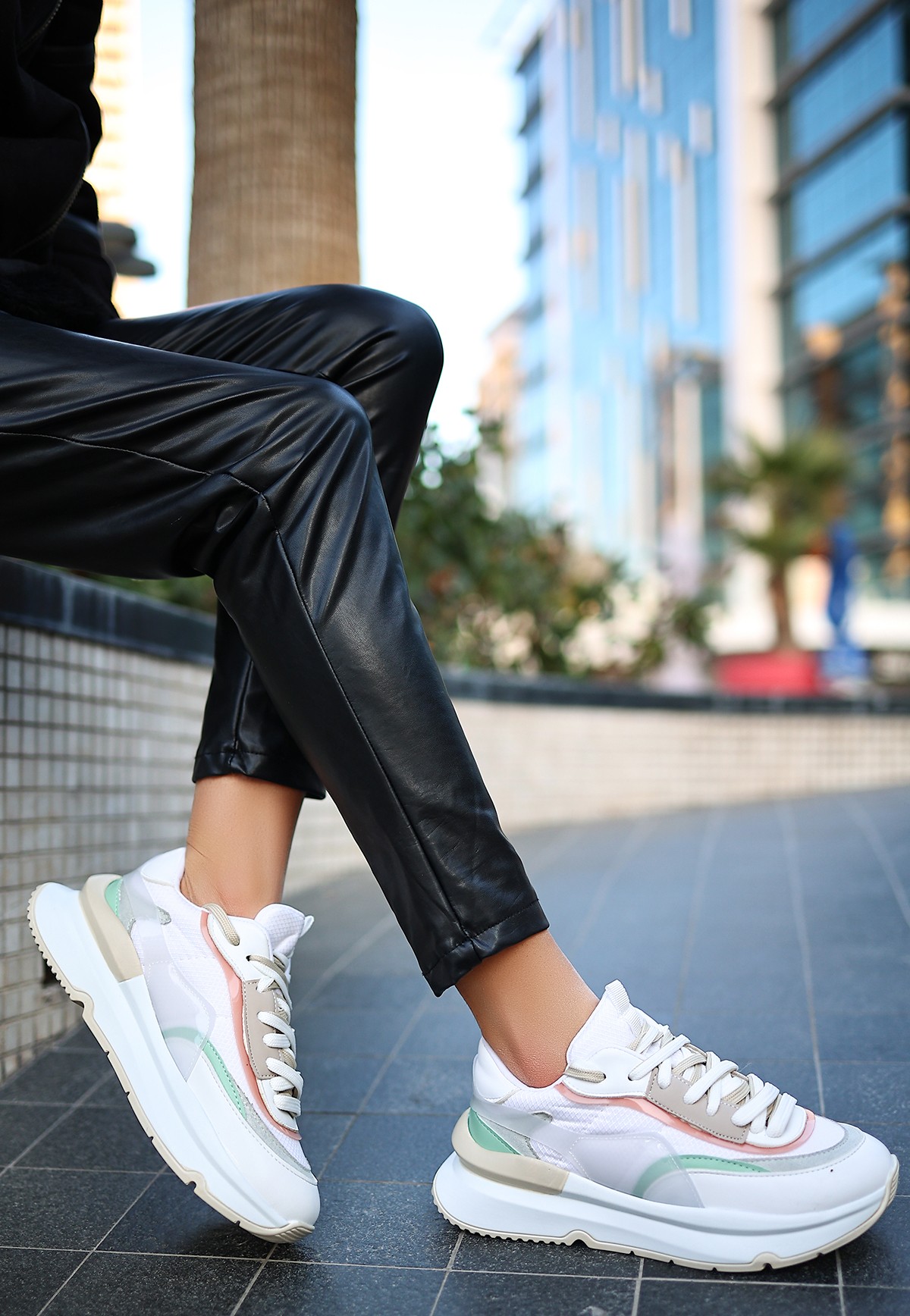 Aleh Beyaz Cilt Yeşil Detaylı Spor Ayakkabı - 246778