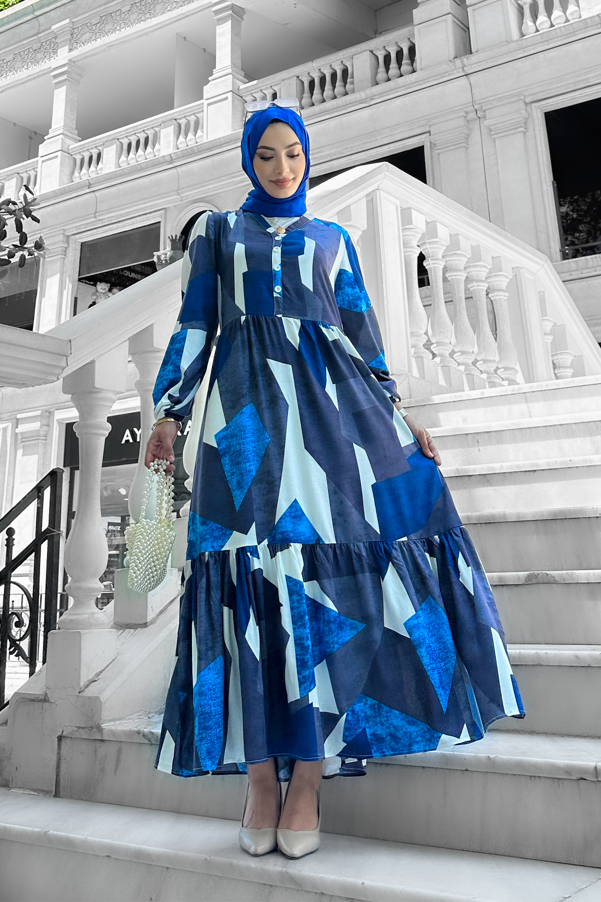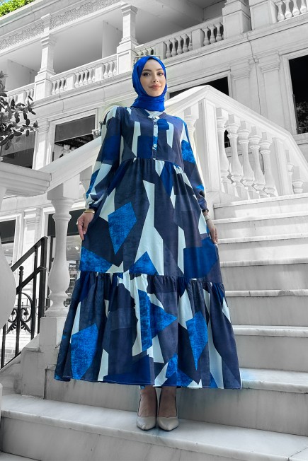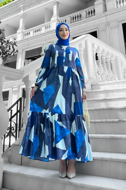 Alya Desenli Viskon Elbise Lacivert - 264029