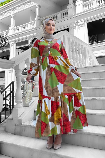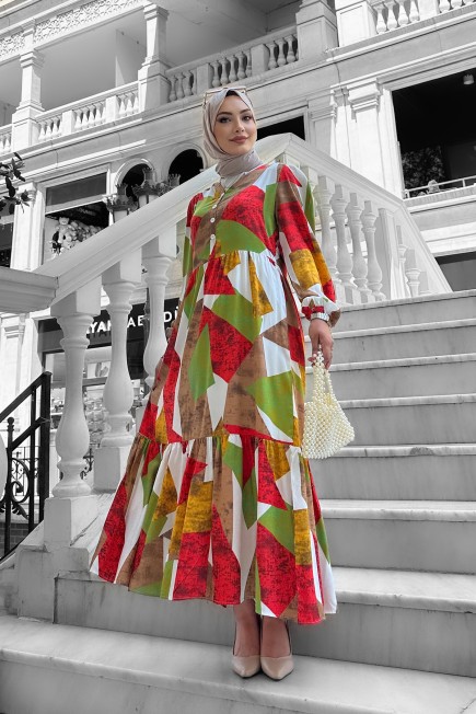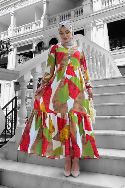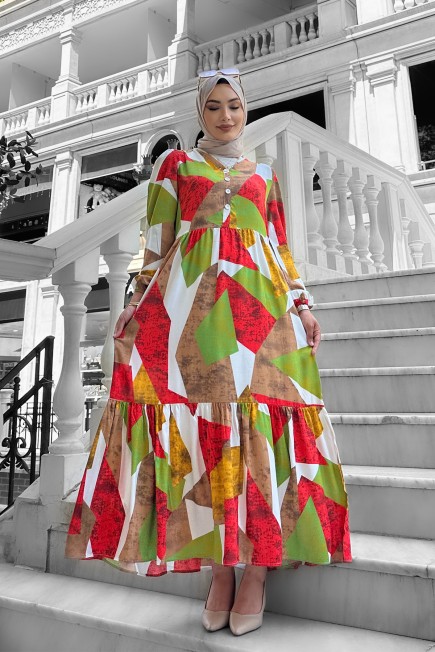 Alya Desenli Viskon Elbise Turuncu - 264031