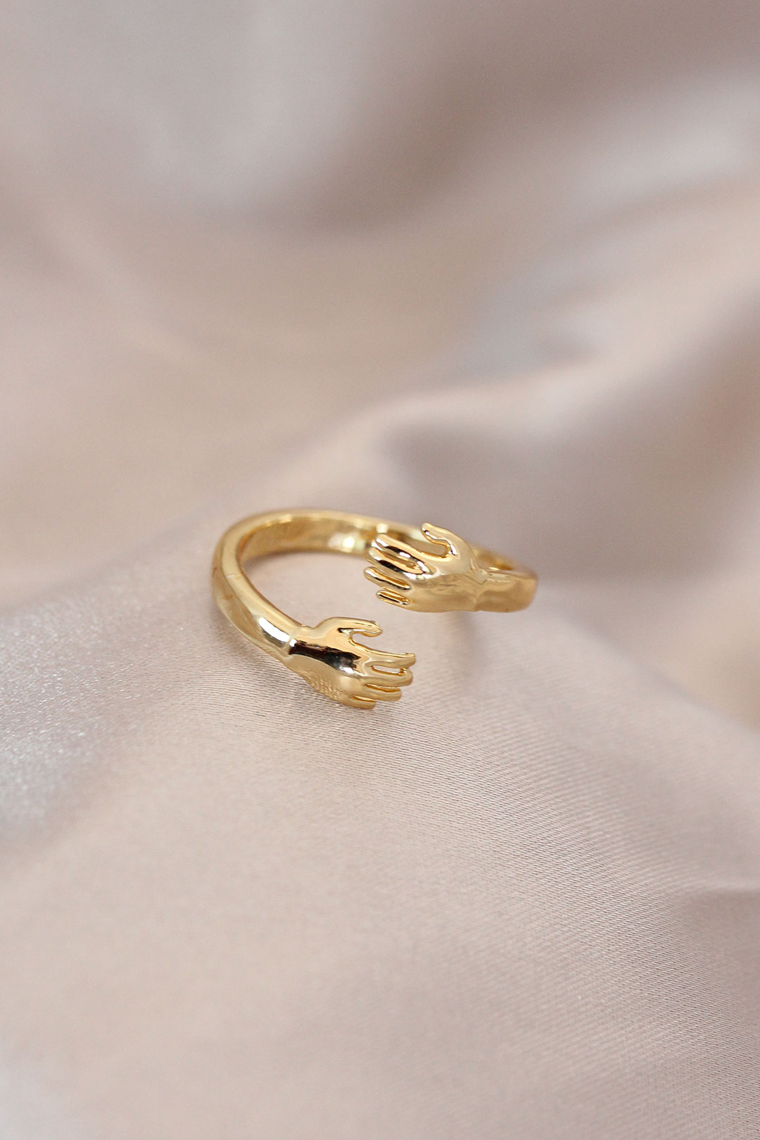 Ayarlamalı Altın Renk Metal Sarılan Eller Model Yüzük - 236858