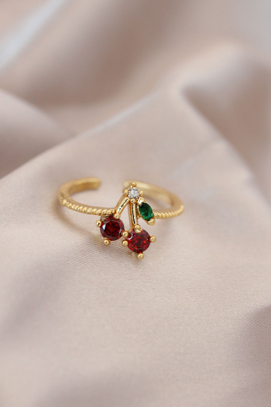 Ayarlamalı Gold Renk Metal Renkli Zirkon Taşlı Kiraz Yüzük - 236877