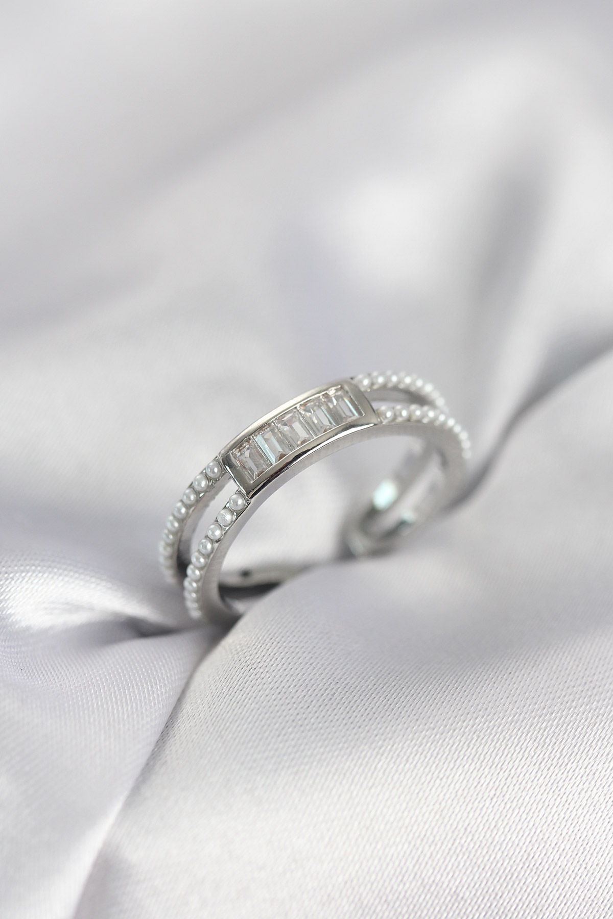 Baget Zirkon Taşlı Gümüş Renk İncili Kadın Yüzük - 267573