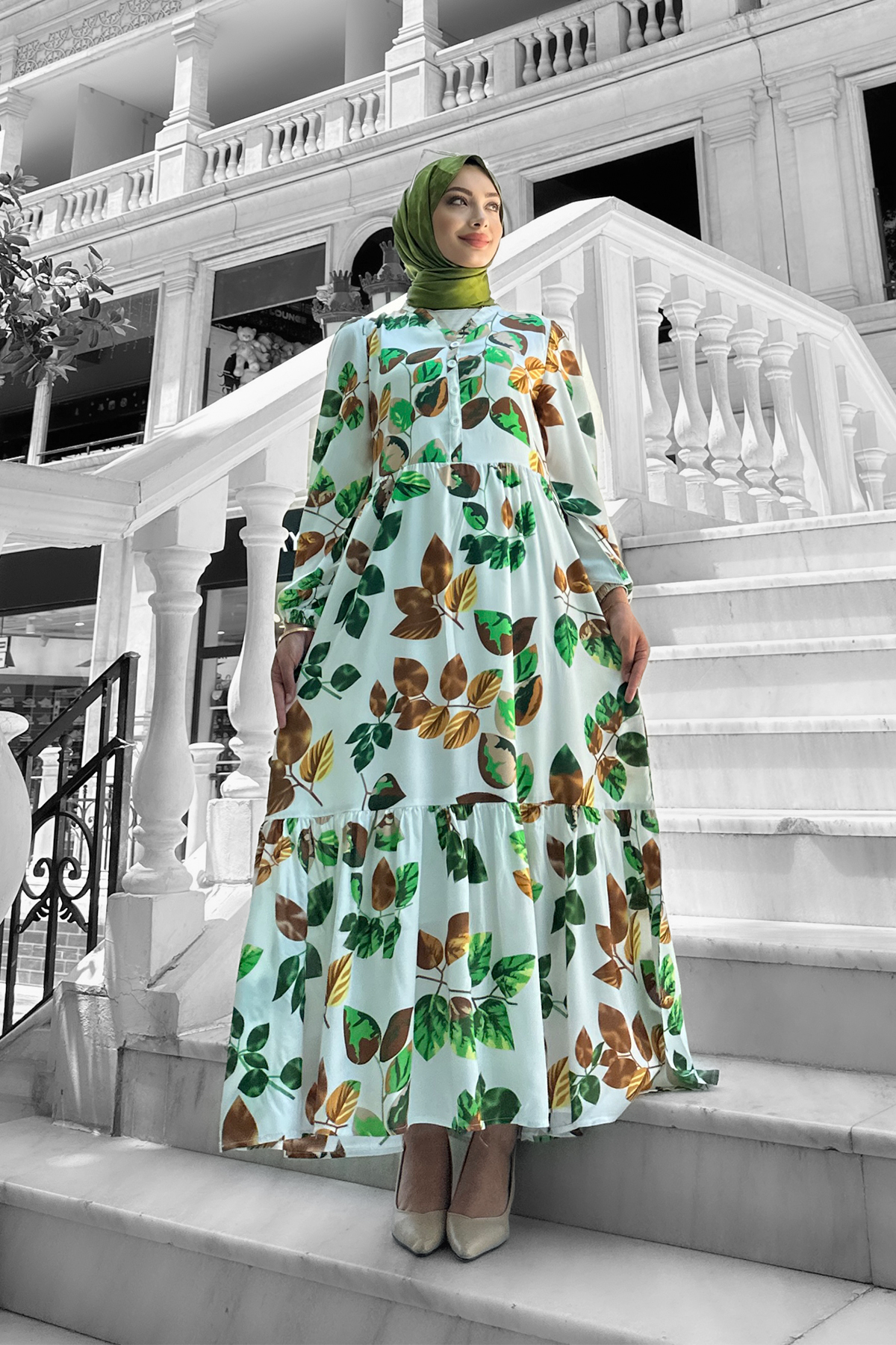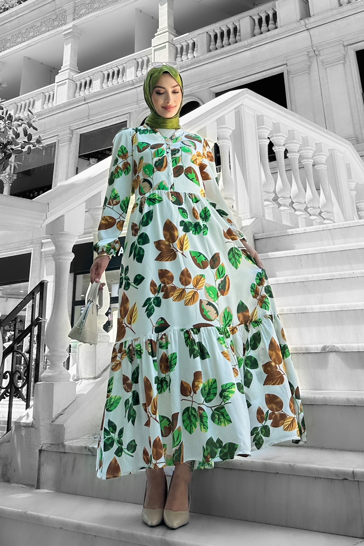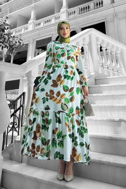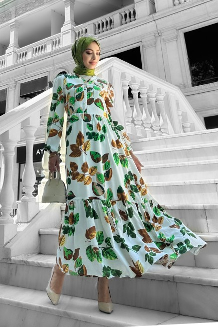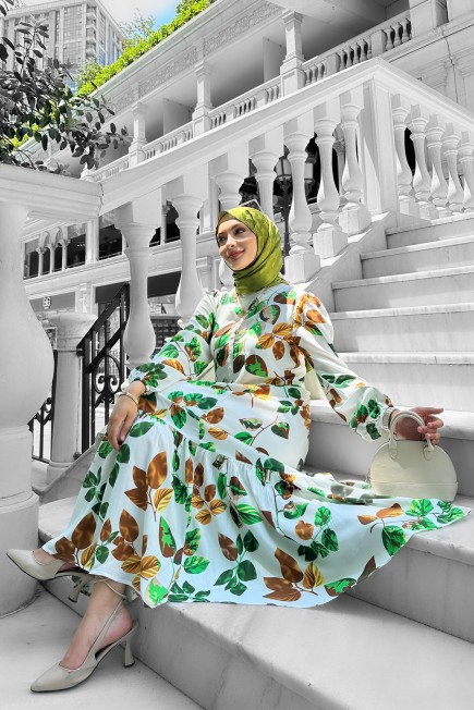 Bahar Dalı Viskon Elbise Yeşil - 264039