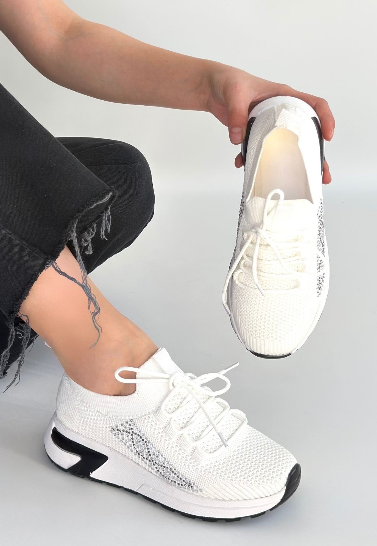 Belan Beyaz Triko Bağcıklı Spor Ayakkabı - 267243