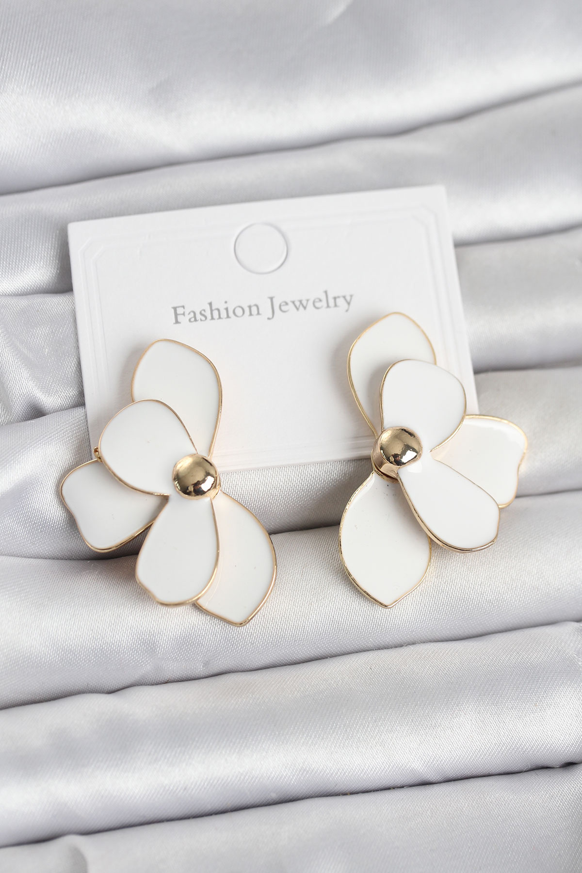 Beyaz Mineli Lotus Model Pirinç Kadın Küpe - 268154