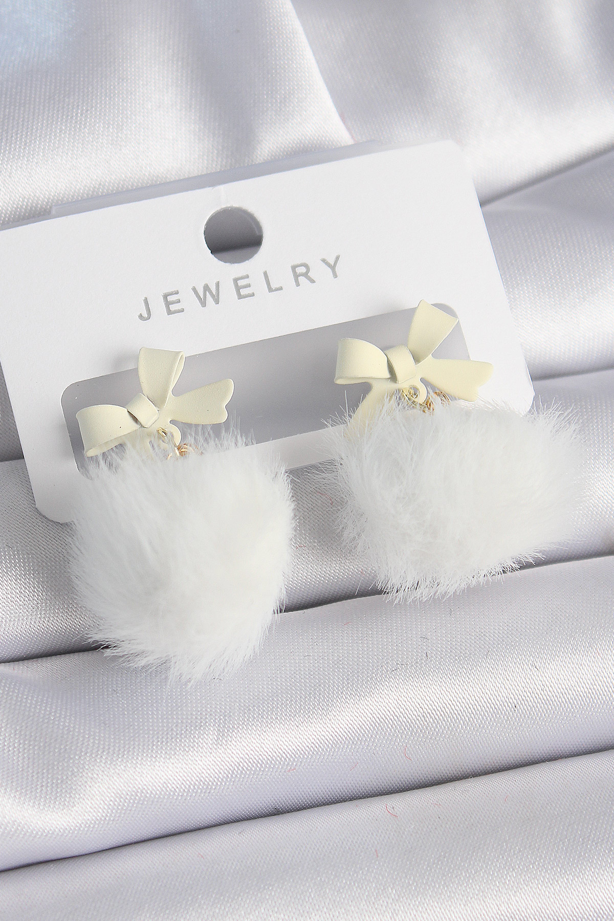 Beyaz Renk Kurdele Tüylü Ponpon Model Kadın Küpe - 258210