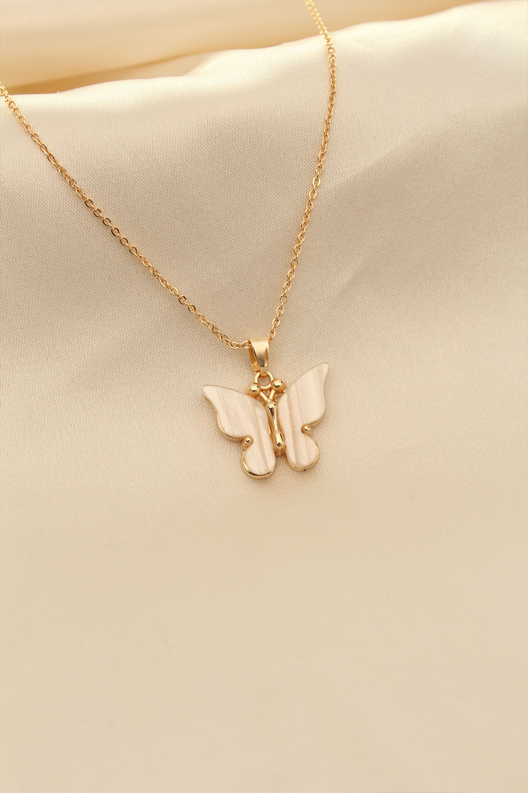 Beyaz Sedefli Kelebek Figürlü Kadın Kolye - 239625